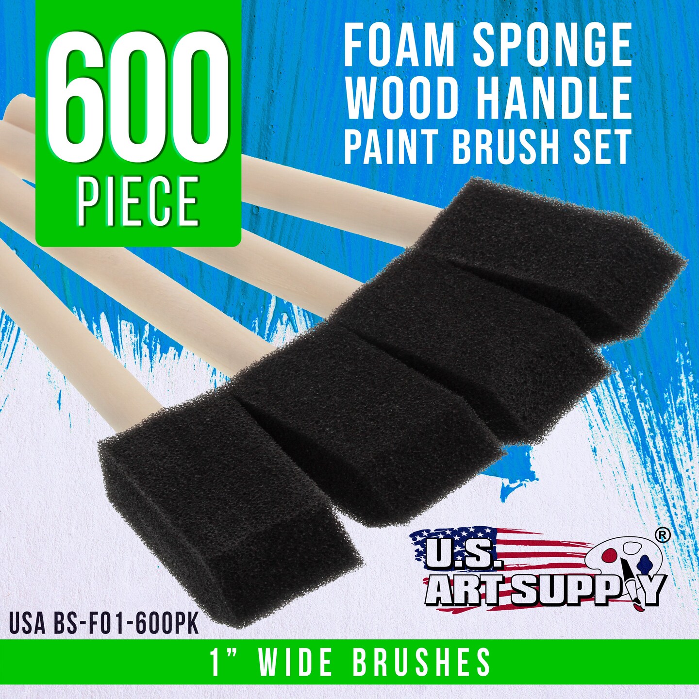 1 inch Foam Sponge Wood Handle Paint Brush Set (Full Case of 600) - Lightweight, durable and great for Acrylics, Stains, Varnishes, Crafts, Art