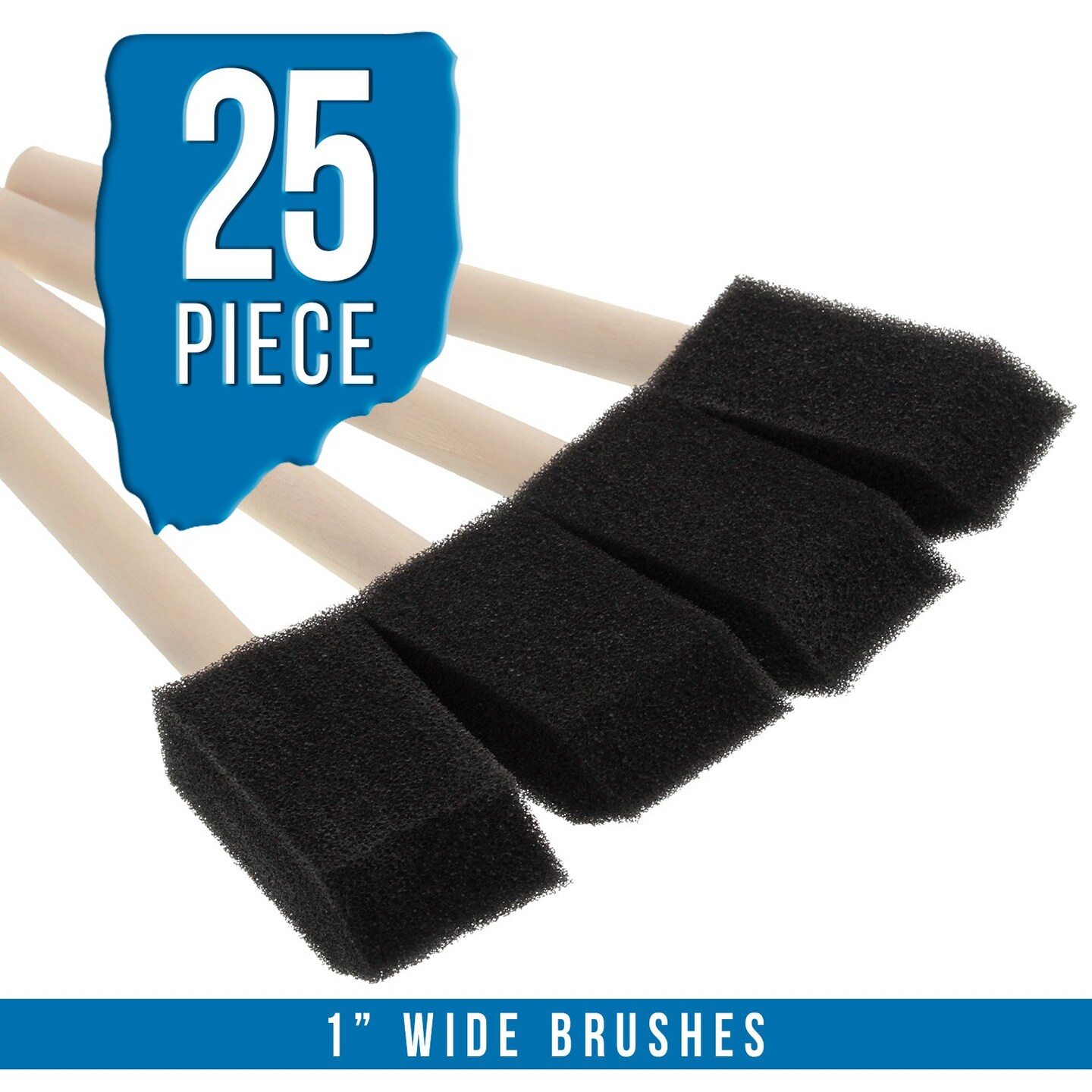 1 inch Foam Sponge Wood Handle Paint Brush Set (Value Pack of 25) - Lightweight, durable and great for Acrylics, Stains, Varnishes, Crafts, Art