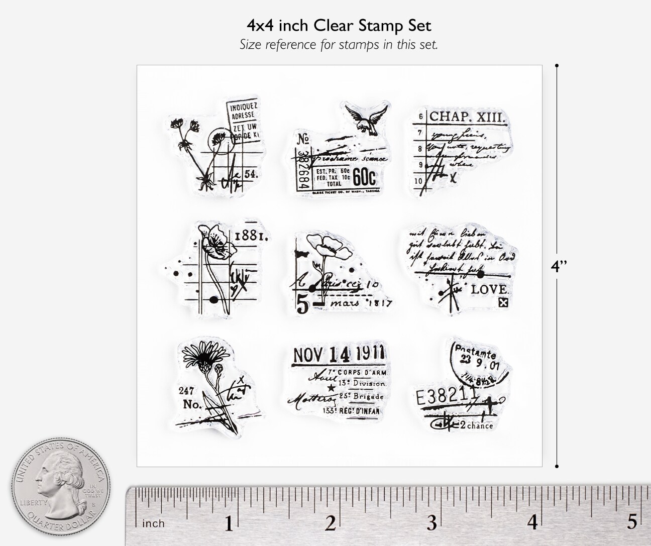 1 inch Small Decorative Stamps on 4x4 inch Sheet by Wintertime Crafts