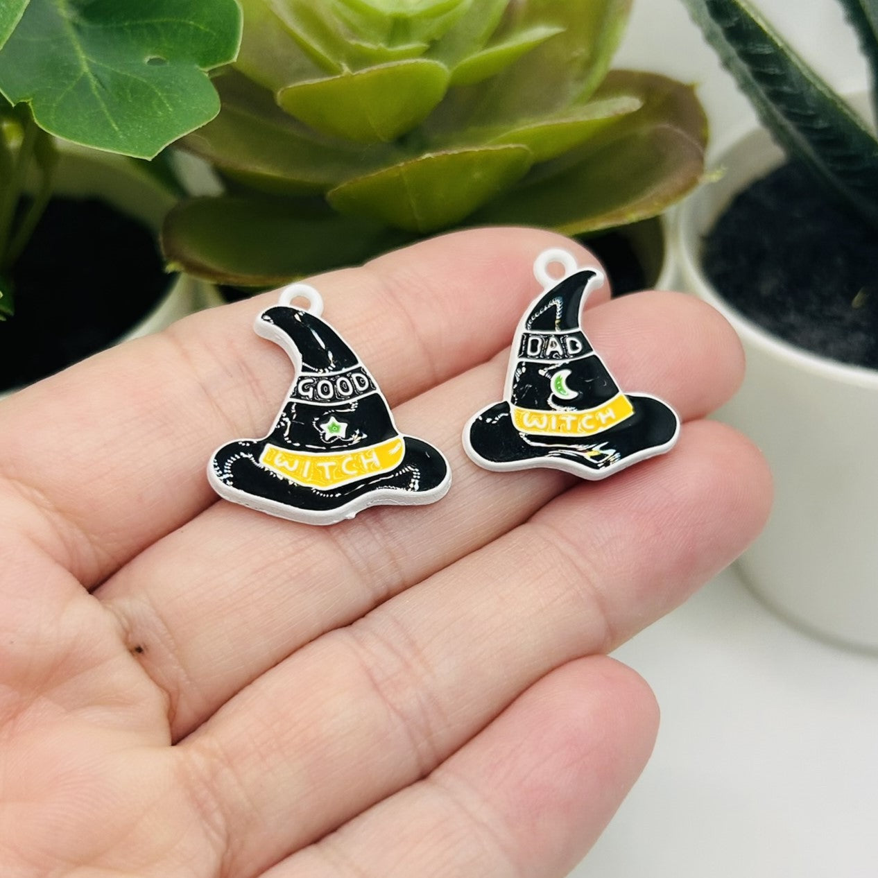 1 or 5 Pairs Good and Bad Witch Hat Charms