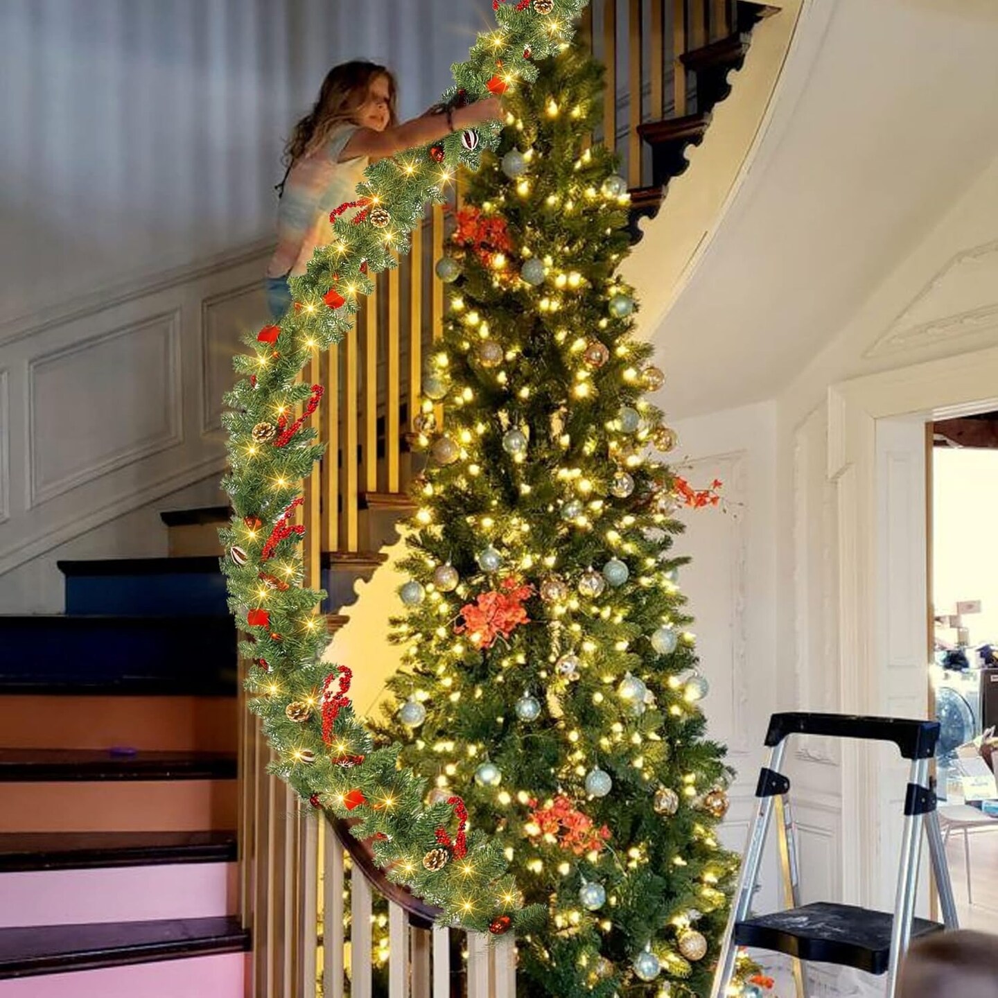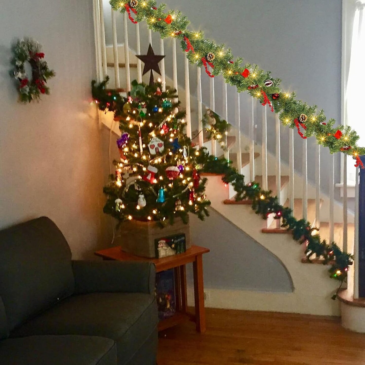 1 Pack 9FT Christmas Garland with 50 LED Lights - Battery Operated with 8 Modes