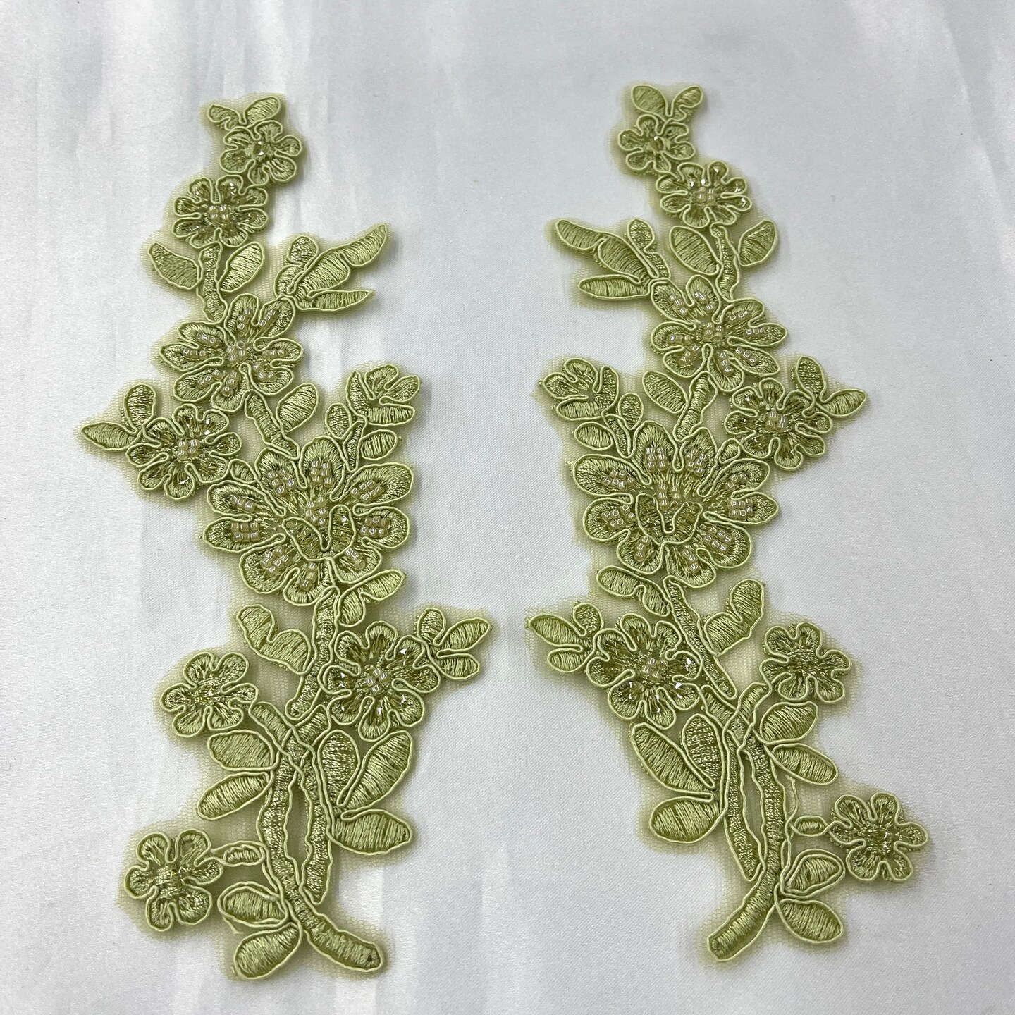 1 Pair Beaded & Corded Floral Lace Applique 10" x 2" Each Side