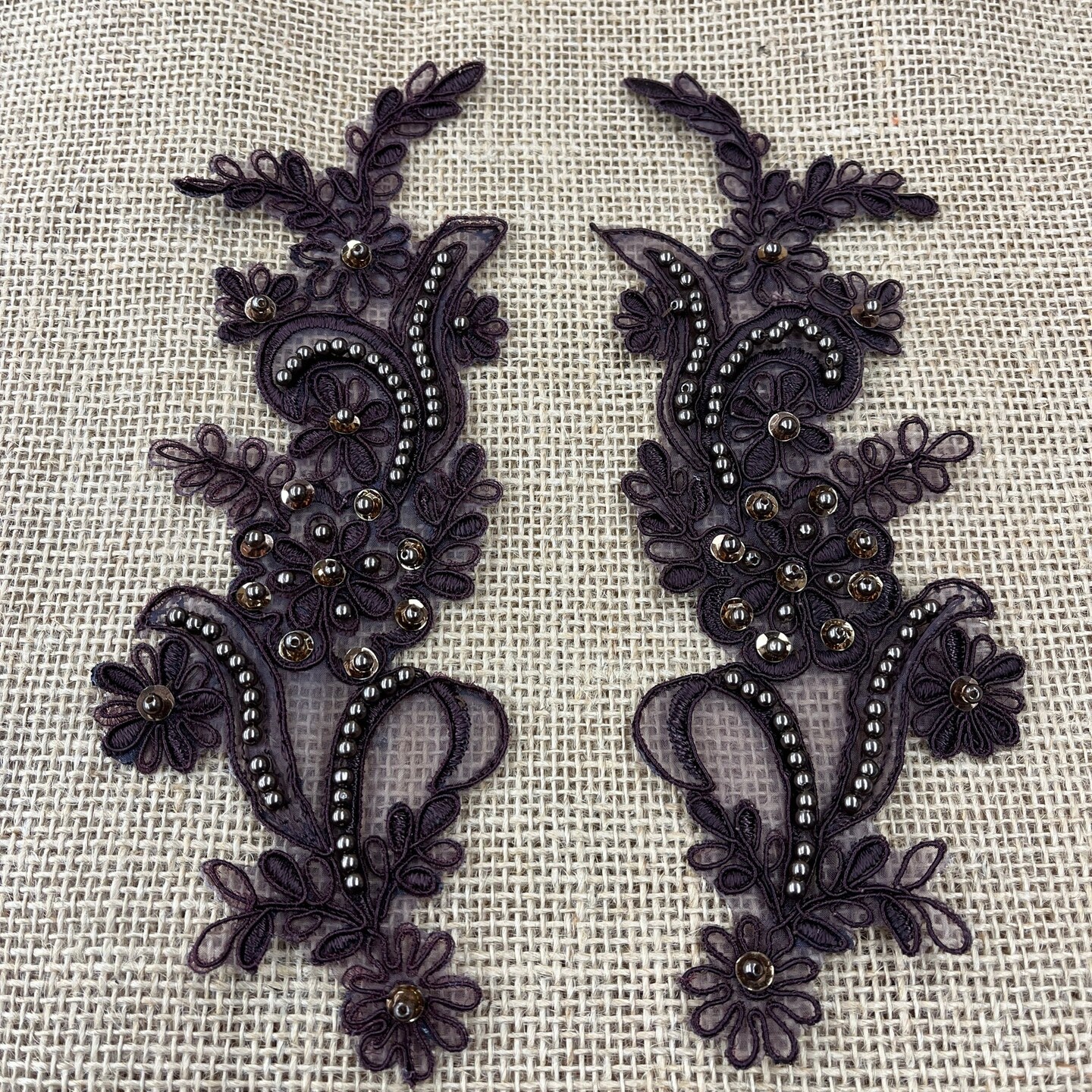 1 Pair Beaded & Corded Floral Lace Applique 9" x 2.5" Each Side