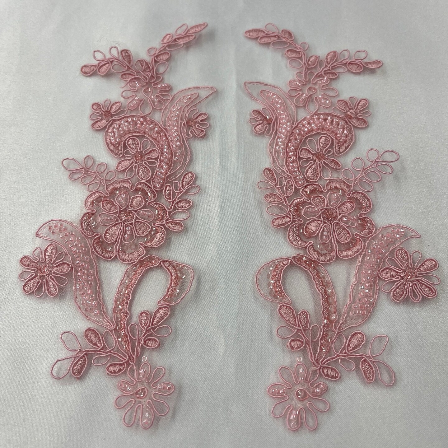 1 Pair Beaded & Corded Floral Lace Applique 9" x 2.5" Each Side