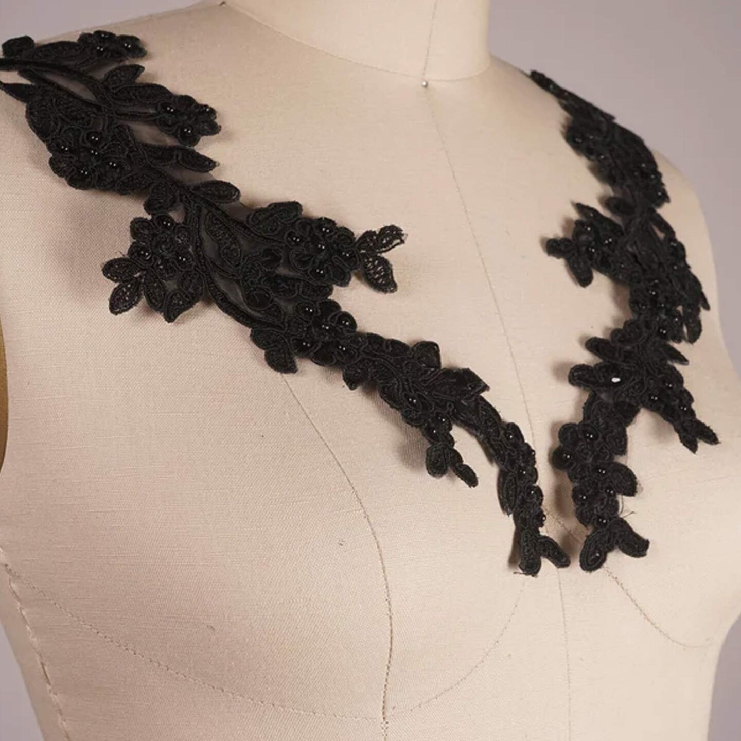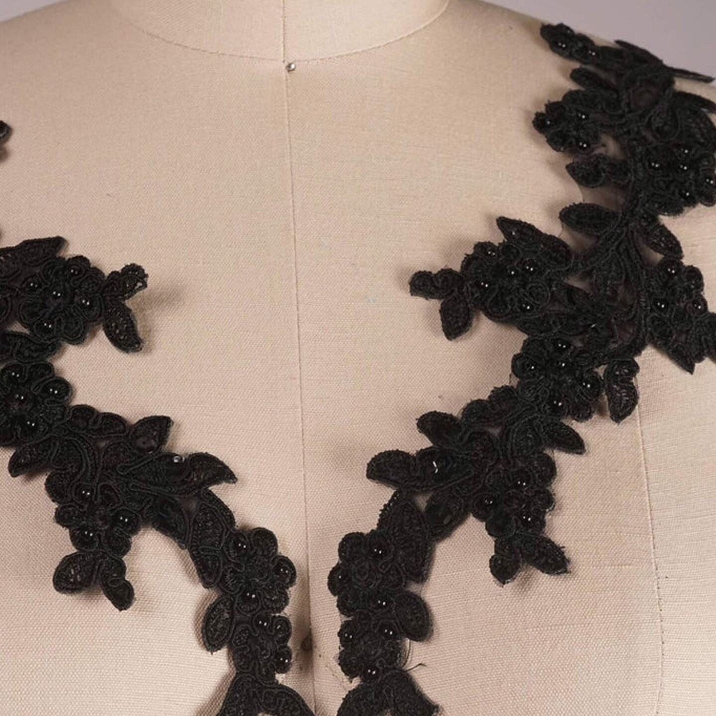 1 Pair Black Beaded Lace Appliqué 10 Inch Floral Embroidered Sequined