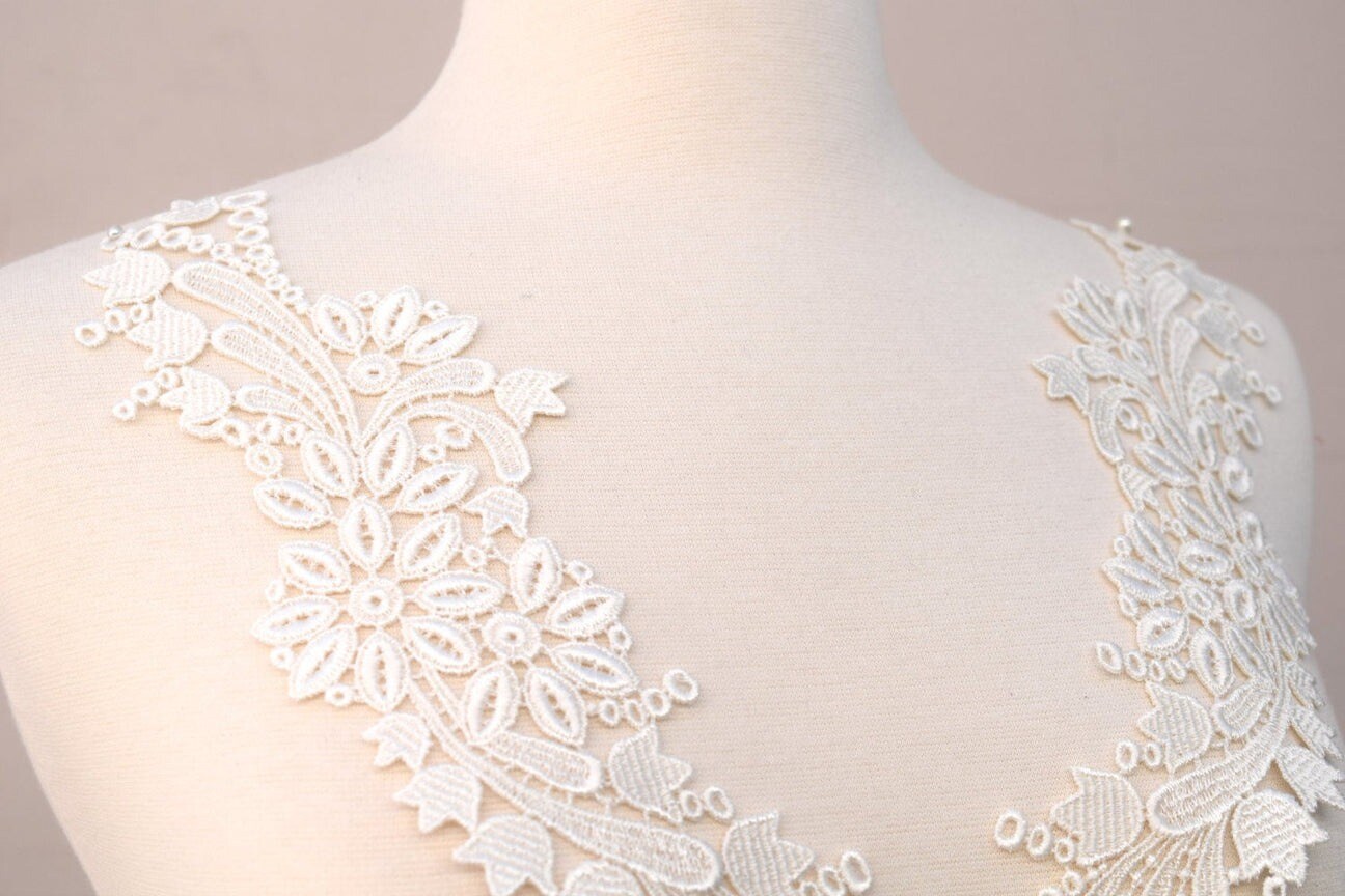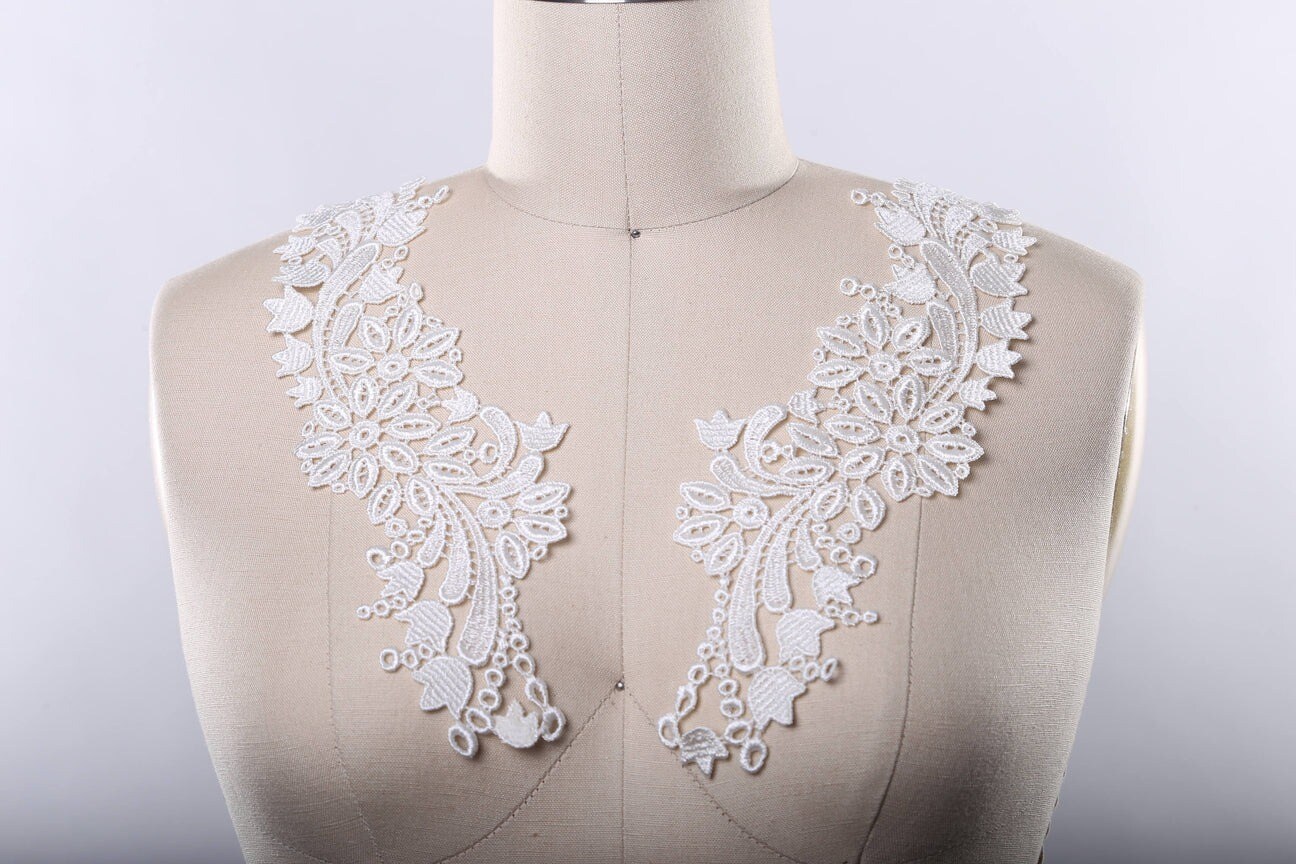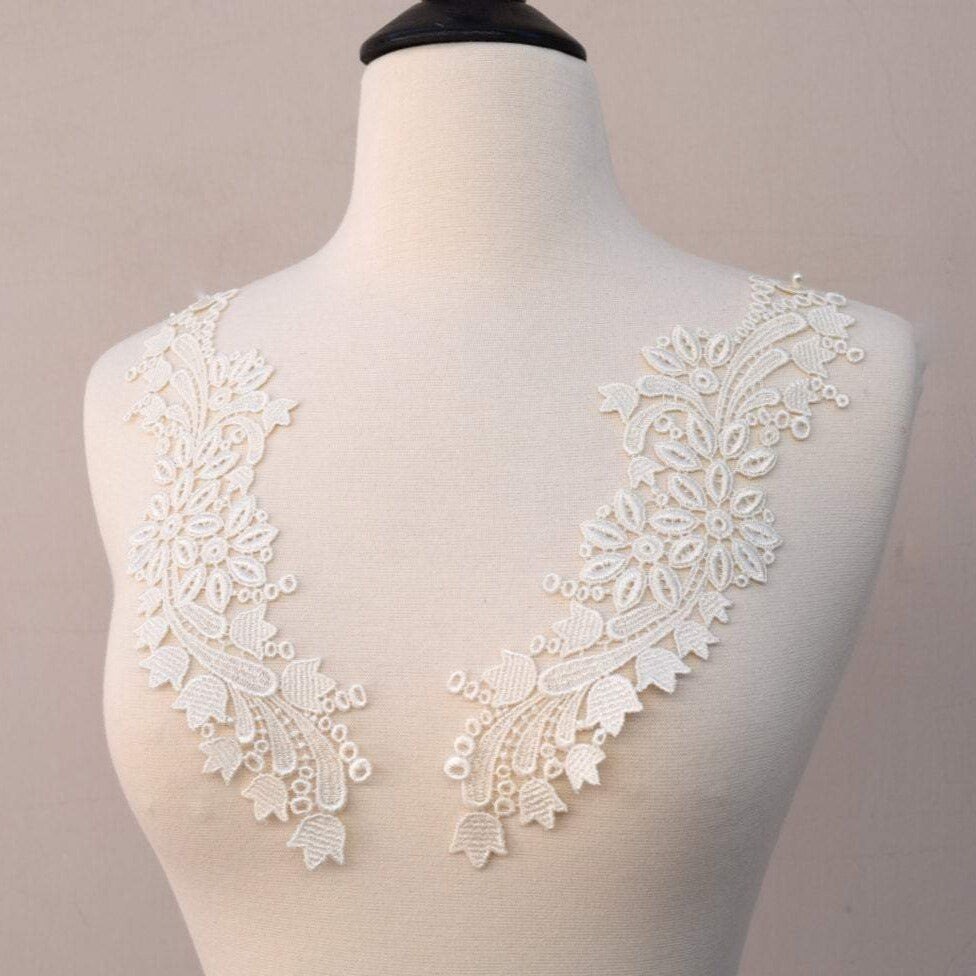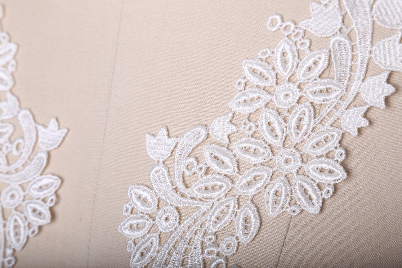 1 Pair Ivory Venice Lace Applique Exclusive Tulip Design Cotton Rayon Blend 11 By 2.5"