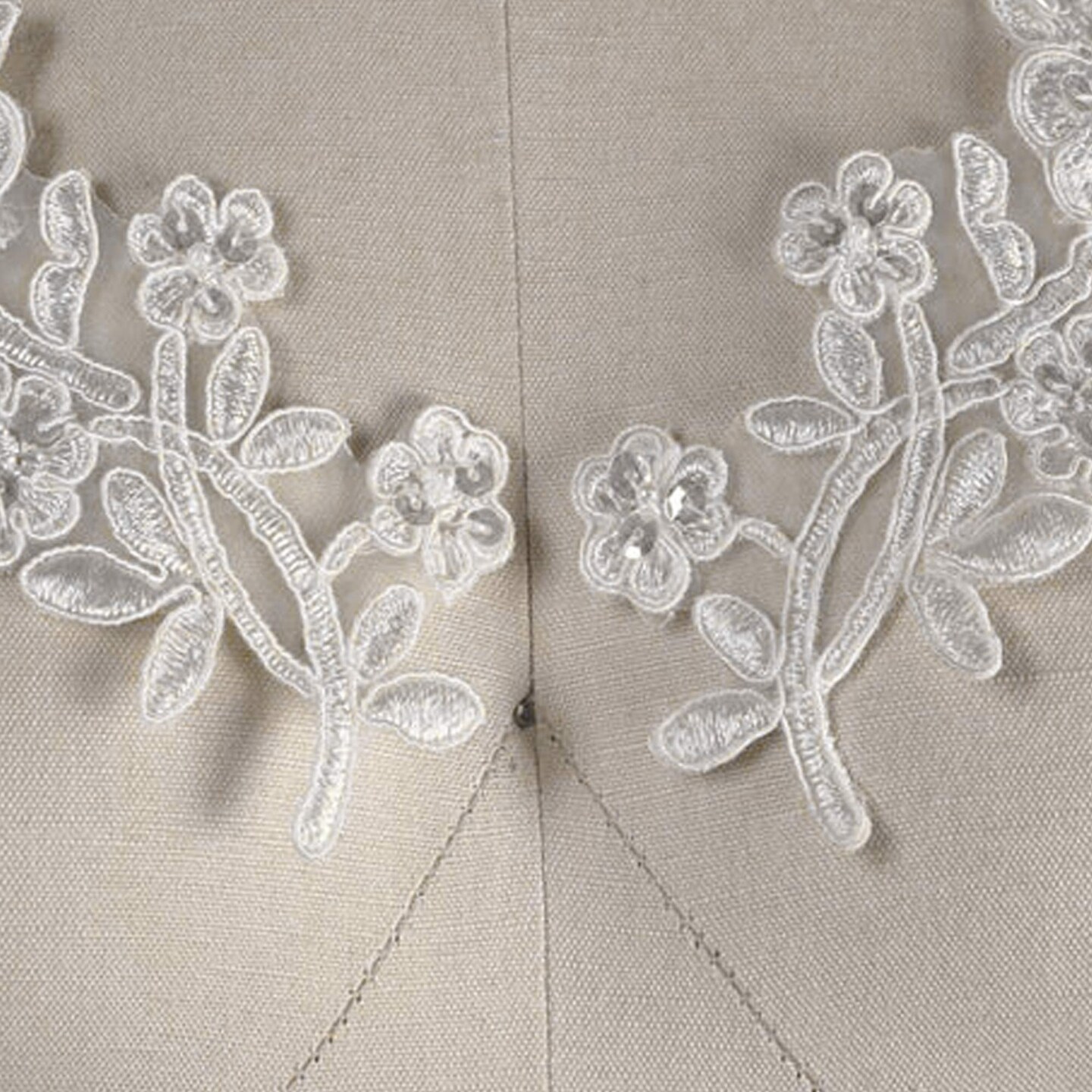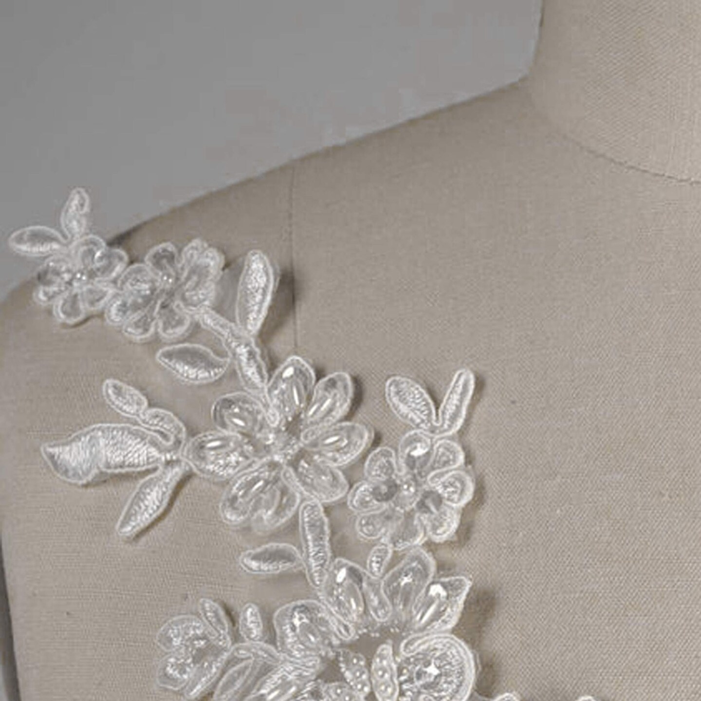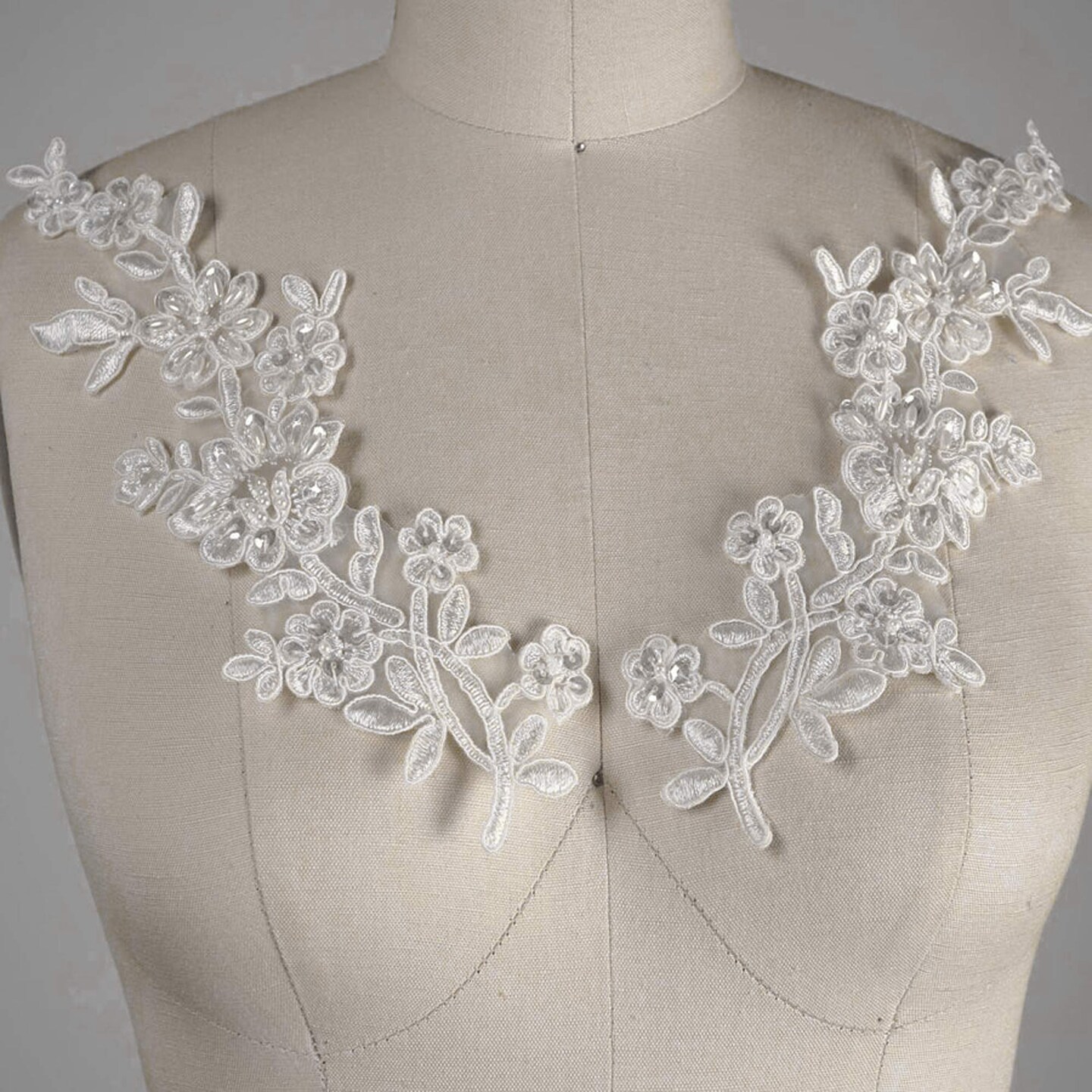1 Pair White Beaded Bridal Lace Applique 10 Inch Symmetrical Alencon with Pearls and Sequins
