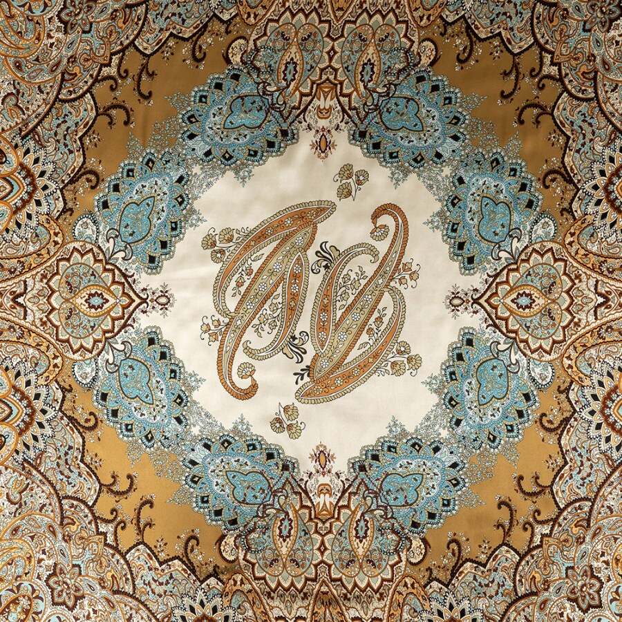 1 Panel Exclusive Italian Peach and Aqua Paisley Digitally Printed Silk Charmeuse Panel 53’’ Width