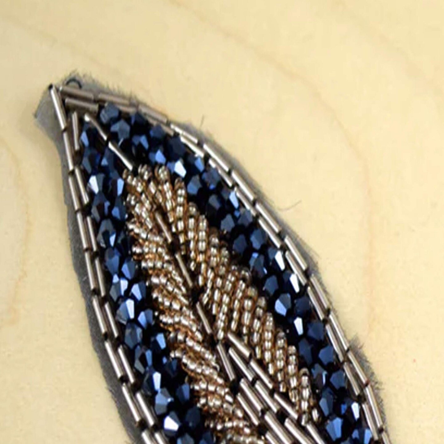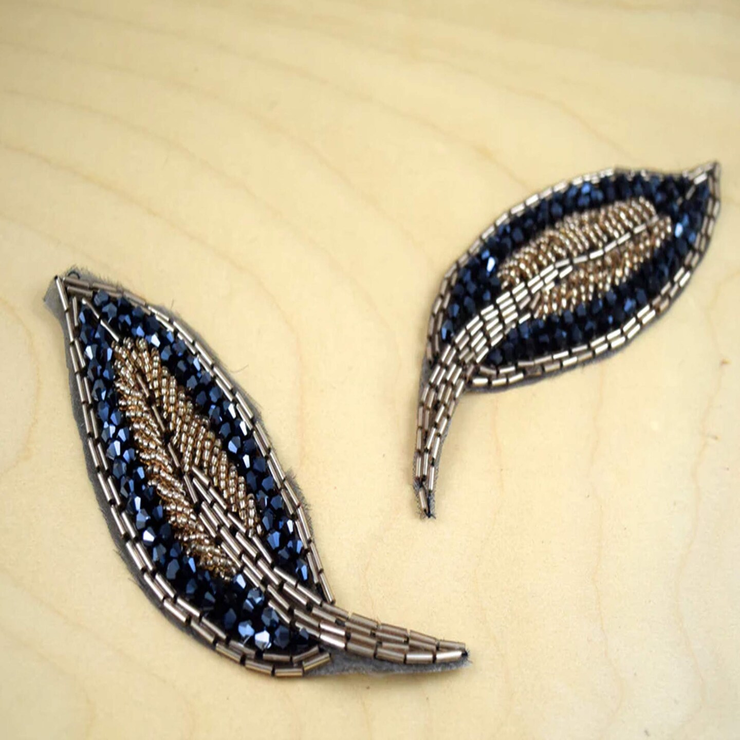 1 Patch 5" Leaf Navy Champagne Beaded Iron On Applique Patch for Dresses and Crafts