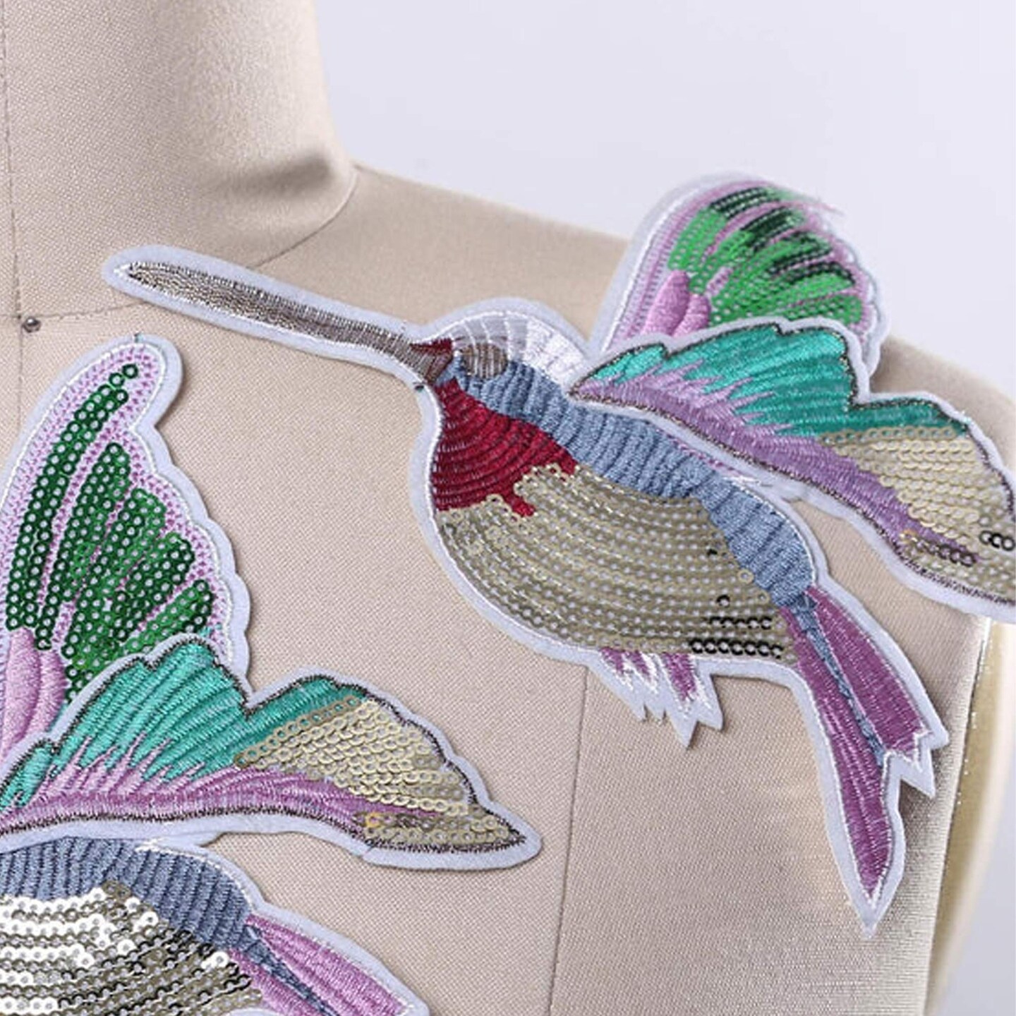 1 Patch Colorful Hummingbird Sequins Embroidery Iron On Wings Bird Applique