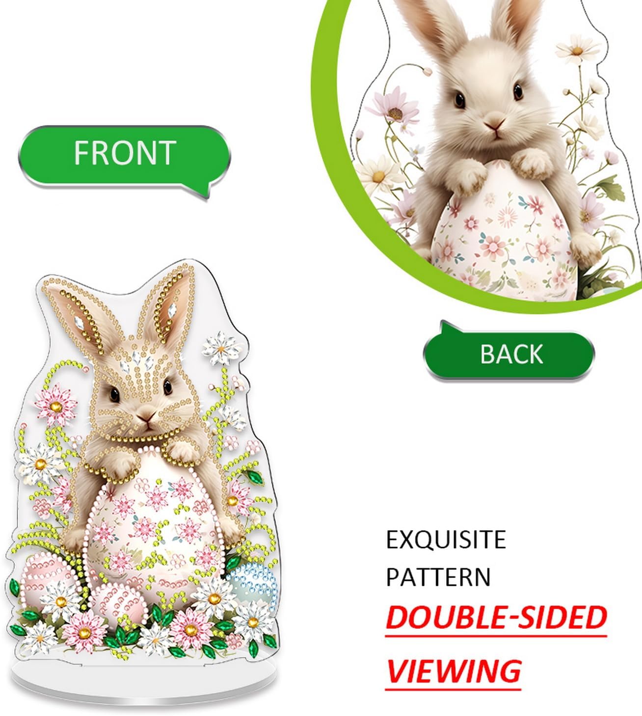 1 Pc Easter Tabletop Diamond Painting Ornament – Cute Bunny, Eggs & Flower Designs, Double-Sided Acrylic Stand-Up Desk Art for Home & Holiday Decor