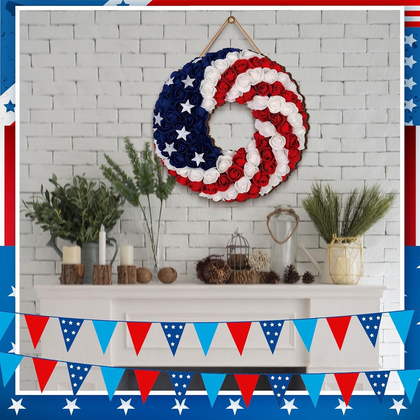 1 Pcs 4th of July Hanging Door Sign 2d Memorial Day Wreath Decorations Patriotic Door Hanger American Rustic Wooden Plaque