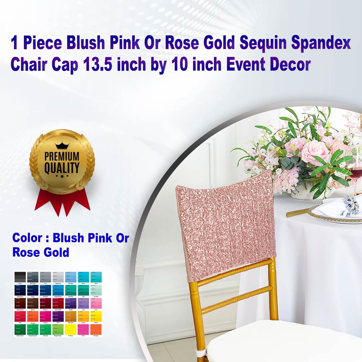 1 Piece Blush Pink Or Rose Gold Sequin Spandex Chair Cap 13.5 inch by 10 inch Event Decor