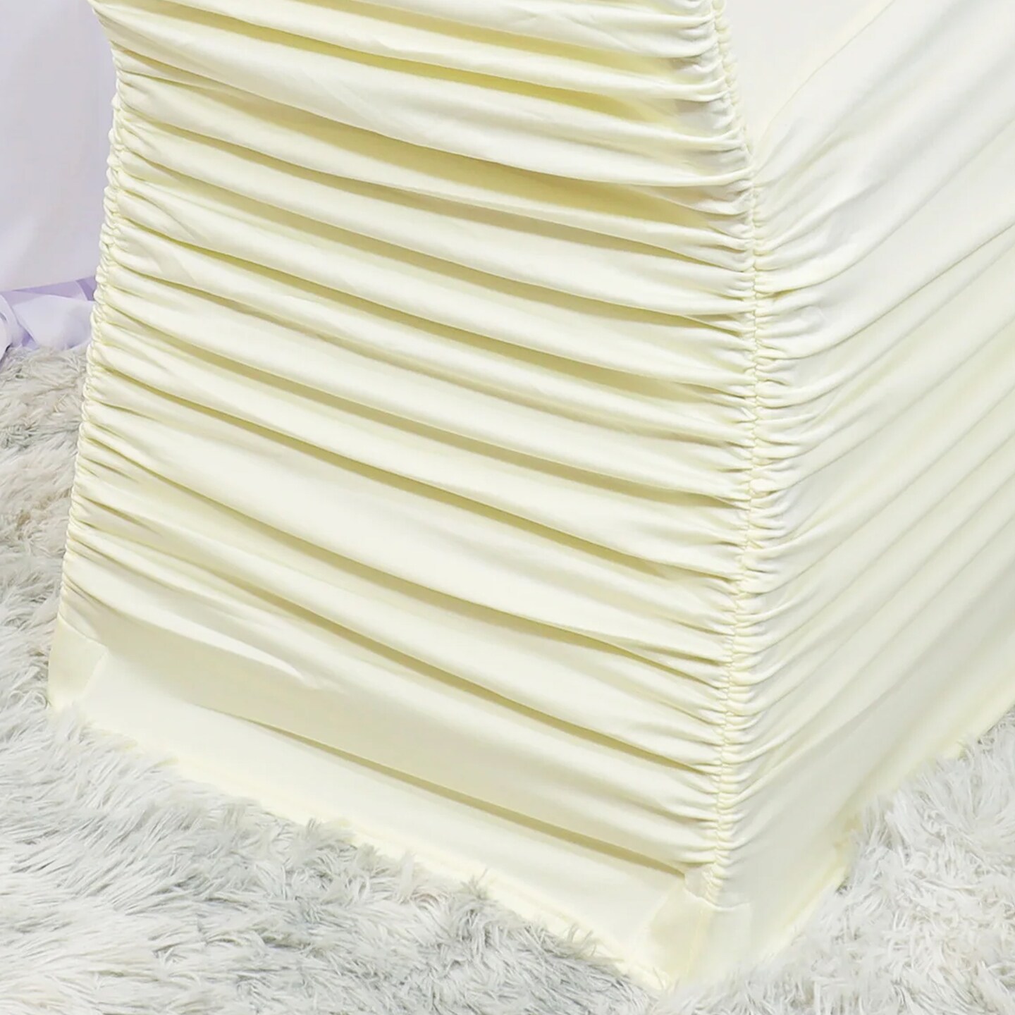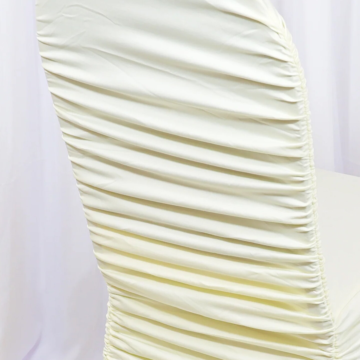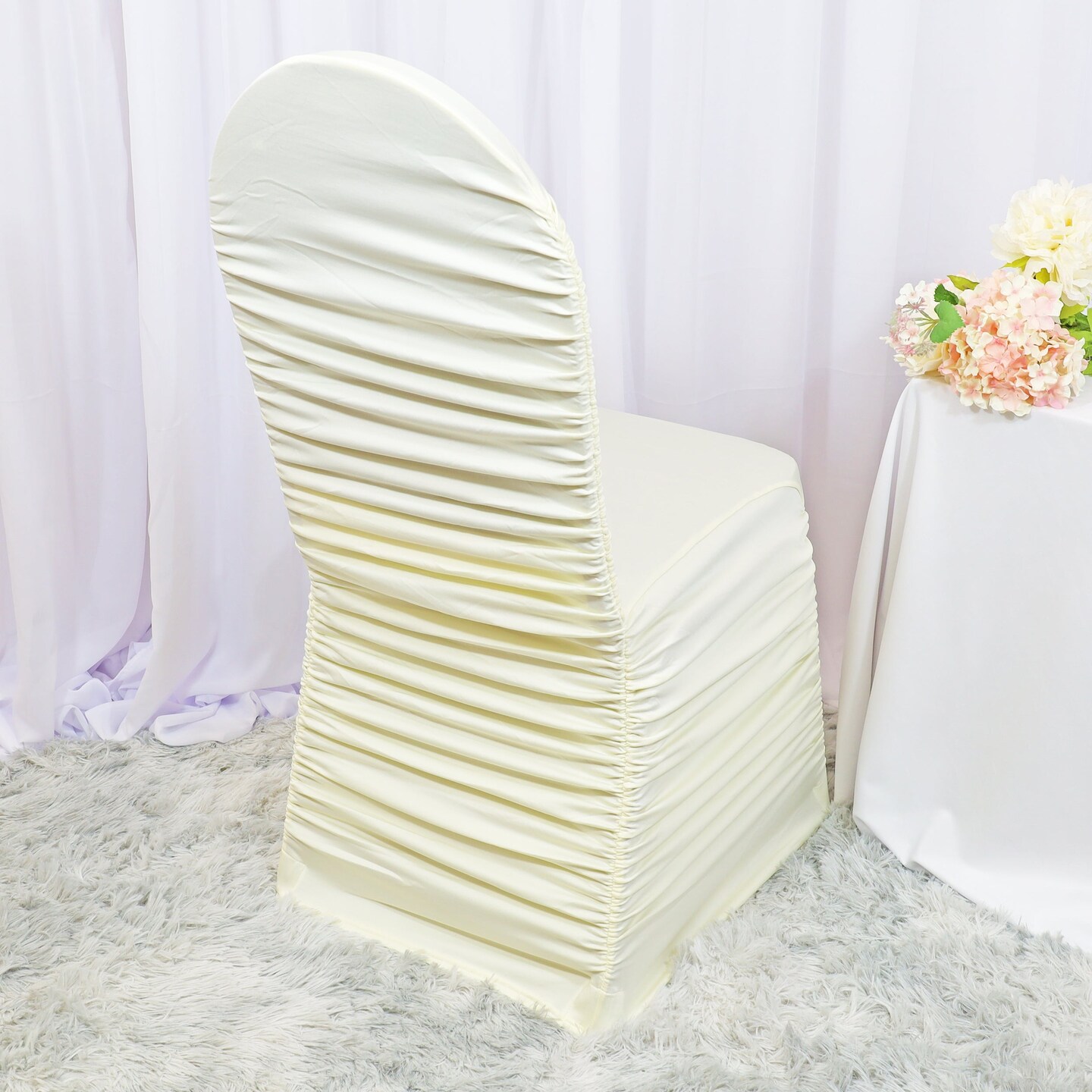 1 Piece Ivory Rouge Chair Cover, Elegant Ruffled Spandex Banquet Chair Wrap