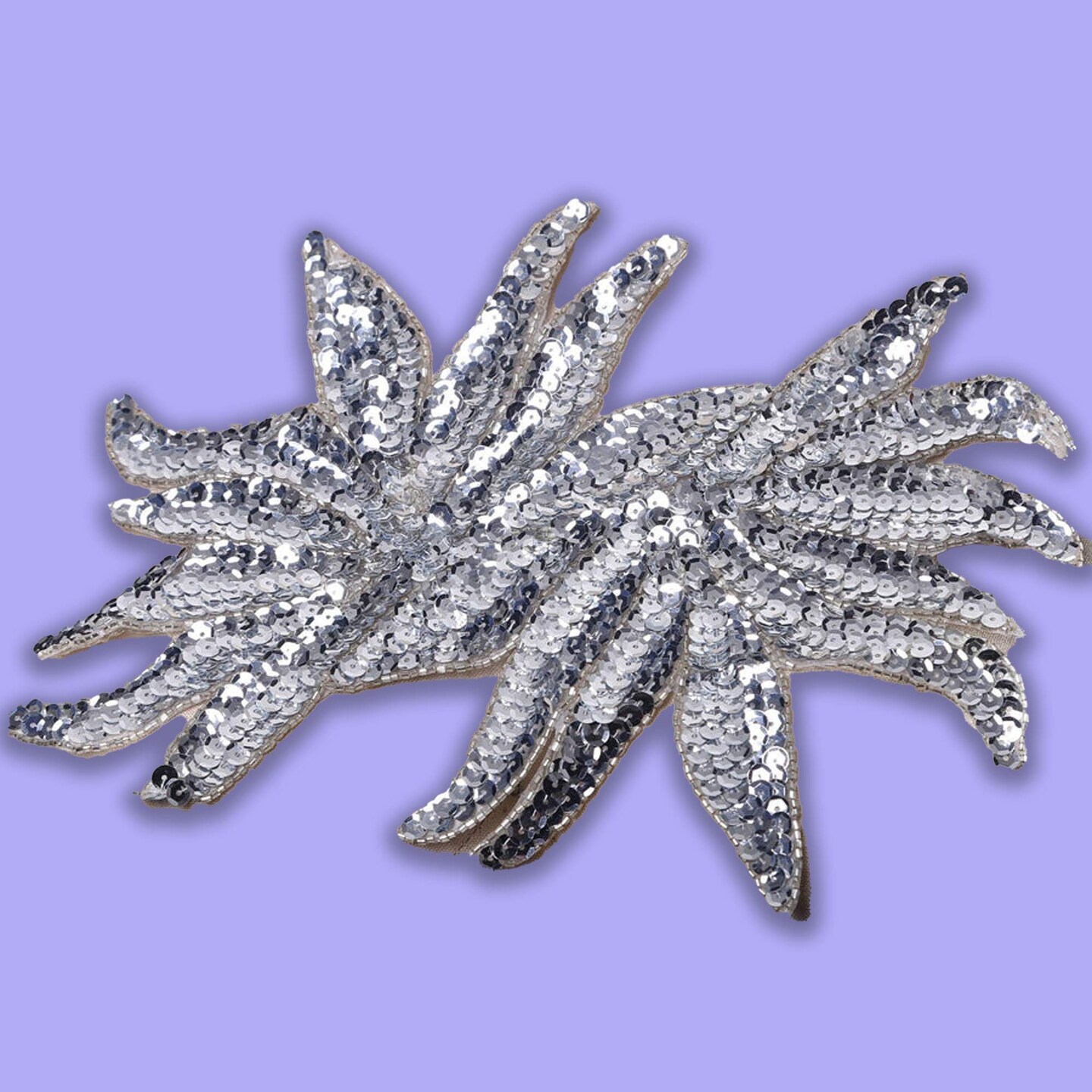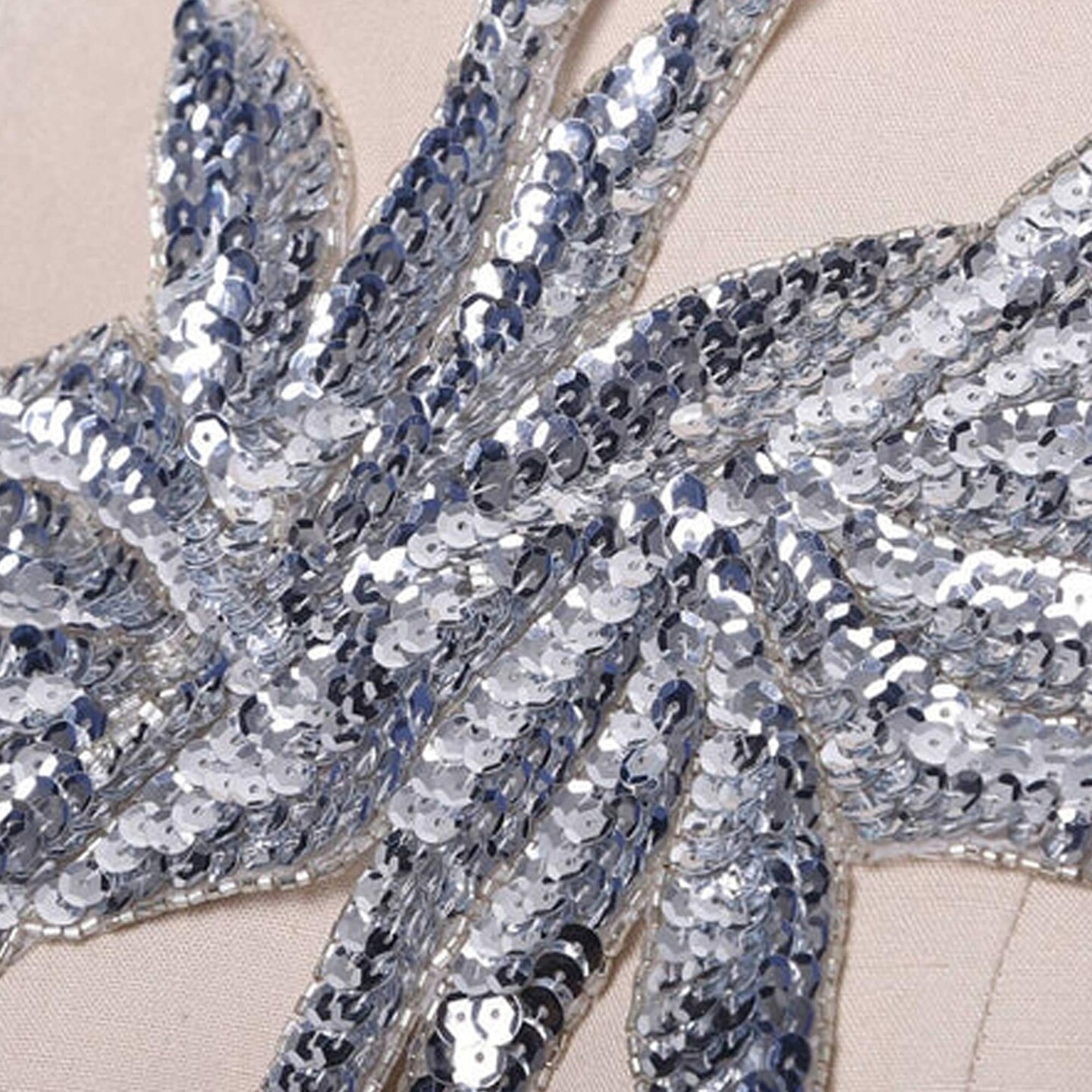 1 Piece Oversized Silver Sequin Patch Large Embroidered Statement Applique for Costumes, Gowns & Jackets
