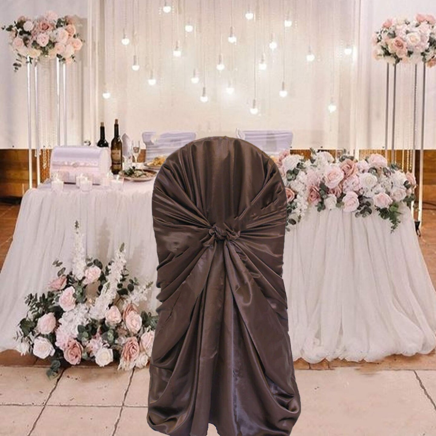 1 Piece Satin Self Tie Universal Event Chair Cover Chocolate
