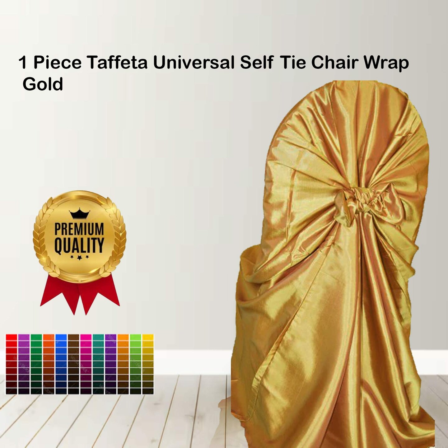 1 Piece Taffeta Universal Self Tie Chair Wrap Gold