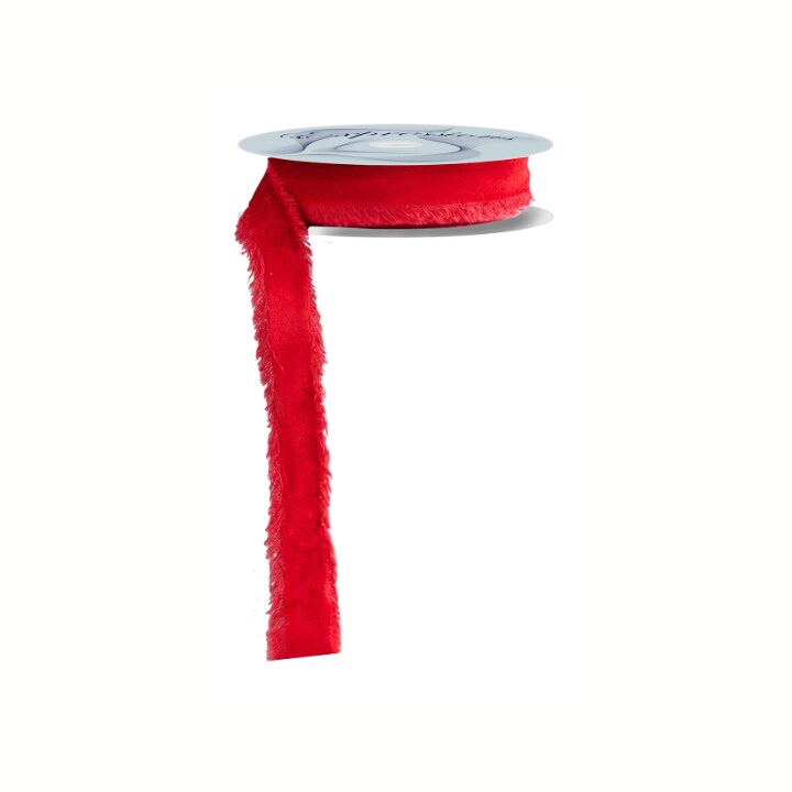 1" Red Frayed Velvet Ribbon | Non-Wired Trim for Gifts & Florals-RN591024