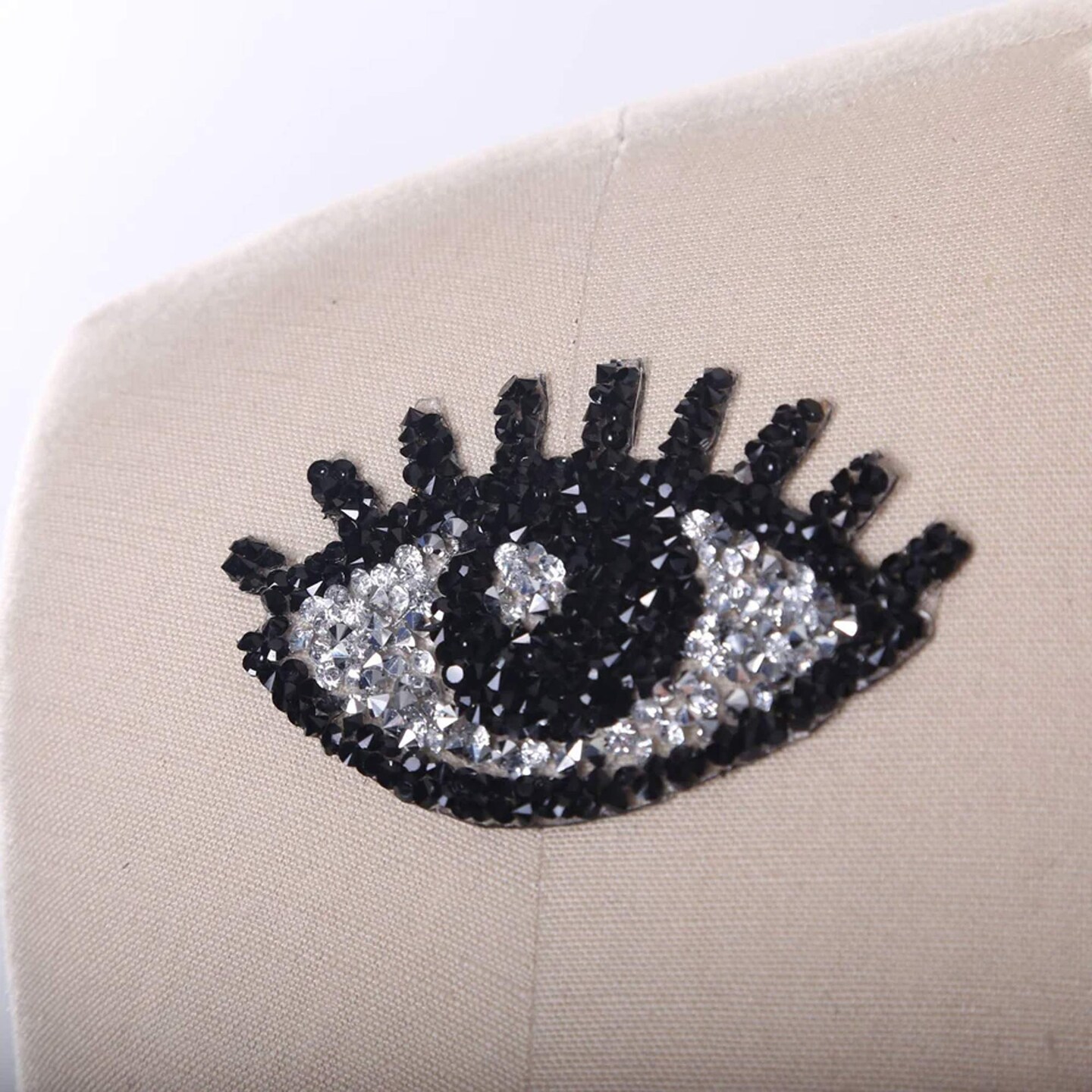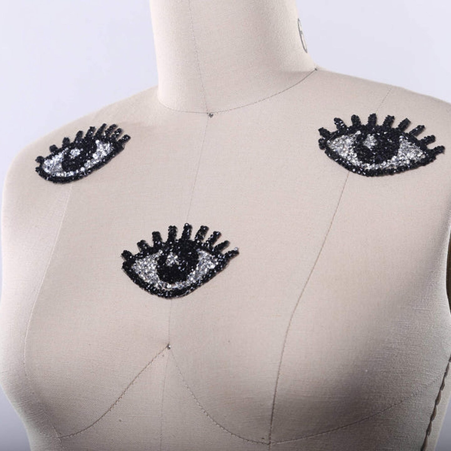 1 Silver and Black 3"x2" Beaded Eye Patch with Eyelash Detail for Cosplay Costume Party Decor