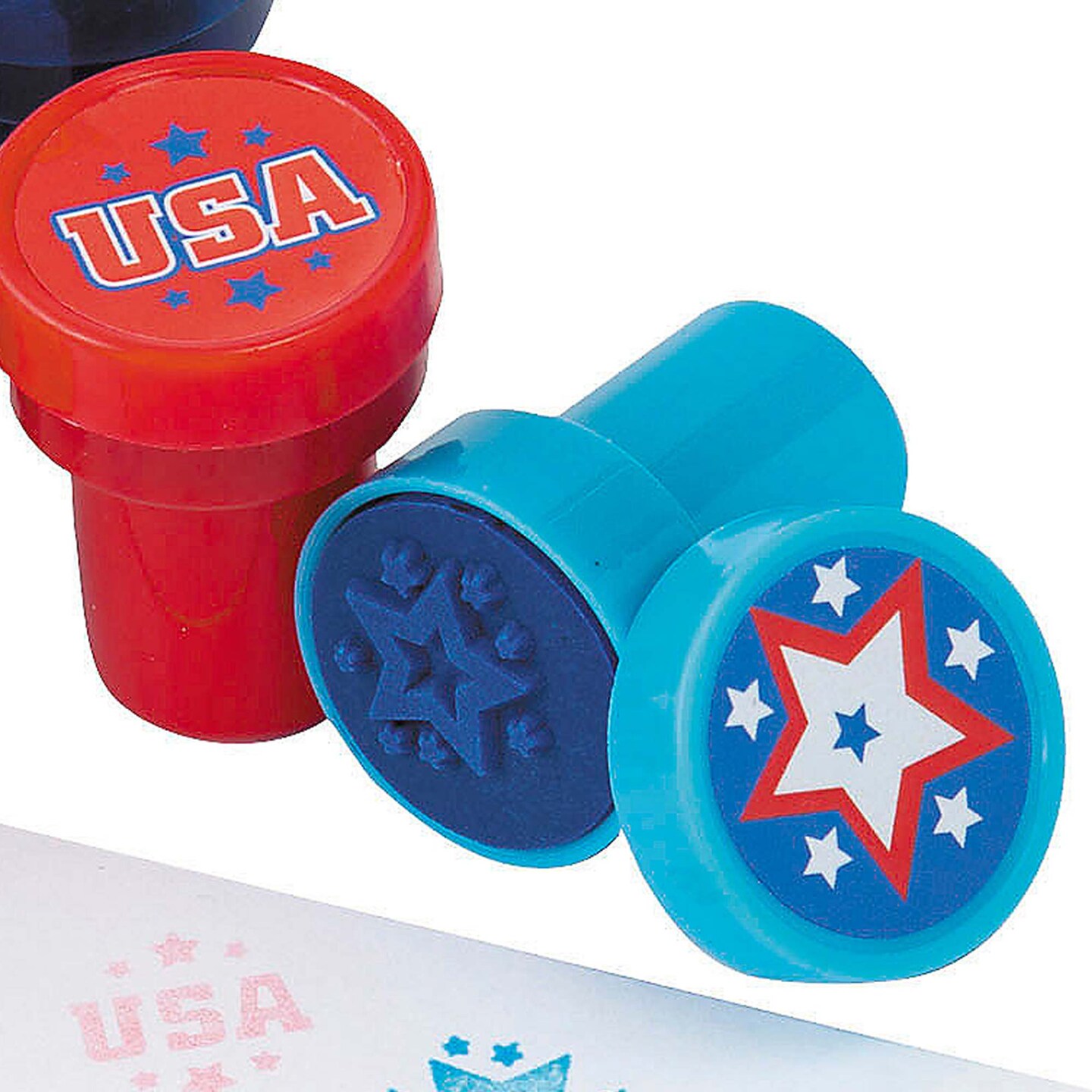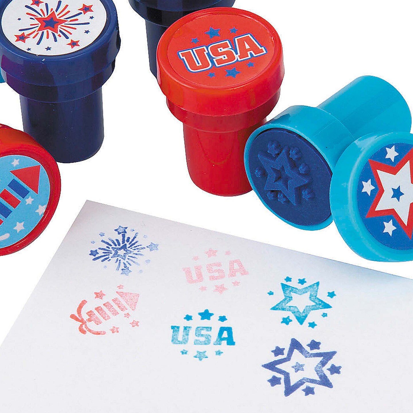 1" x 1 1/2" Mini Patriotic Fireworks & Stars Plastic Stampers
