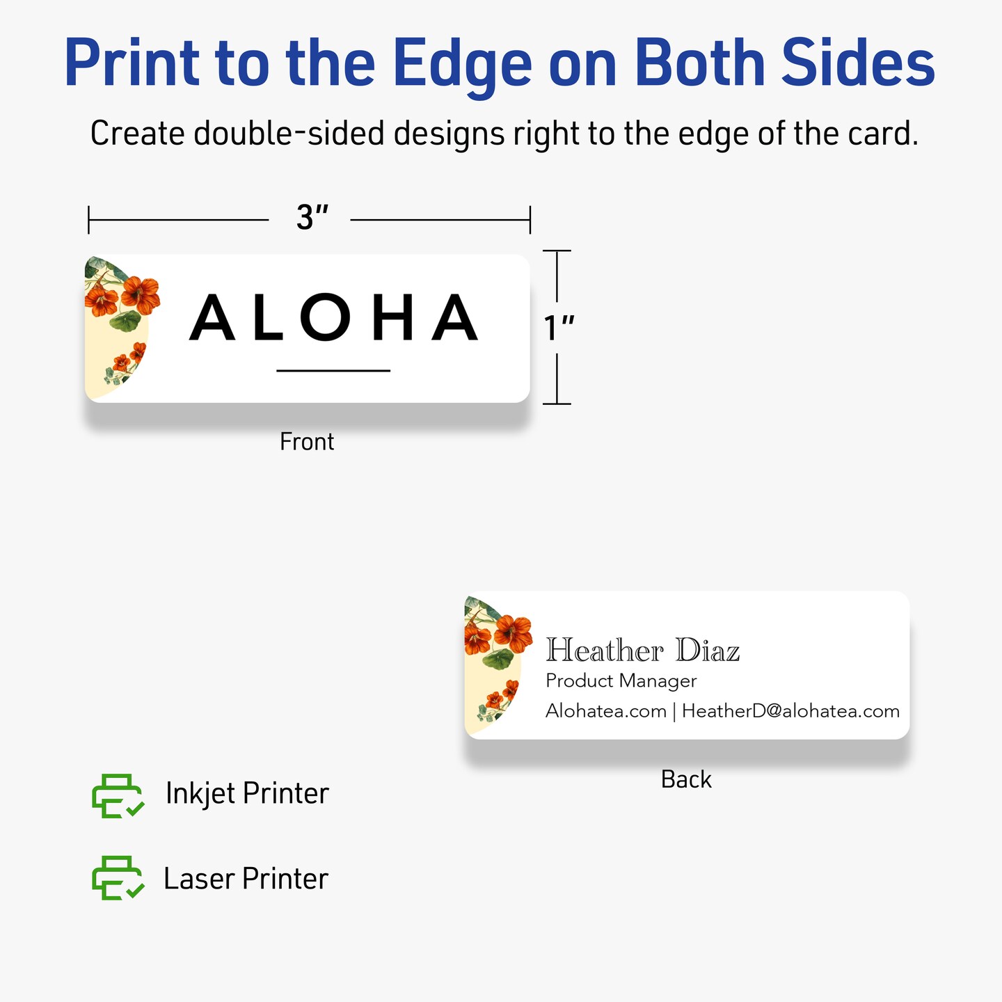 1" x 3" Rectangle Rounded Corners, Matte White Business Cards