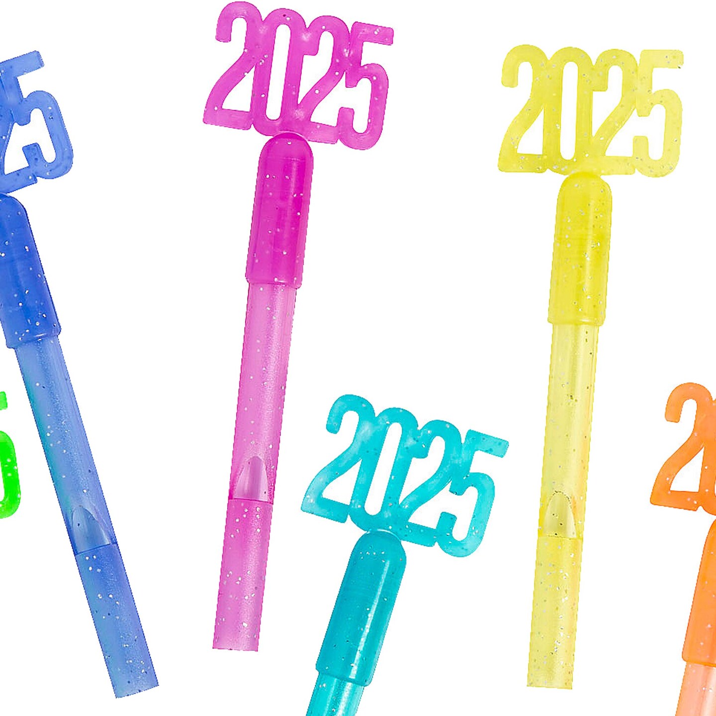 1" x 4" Bulk 72ct 2025 Glitter Brightly Colored Plastic Whistles
