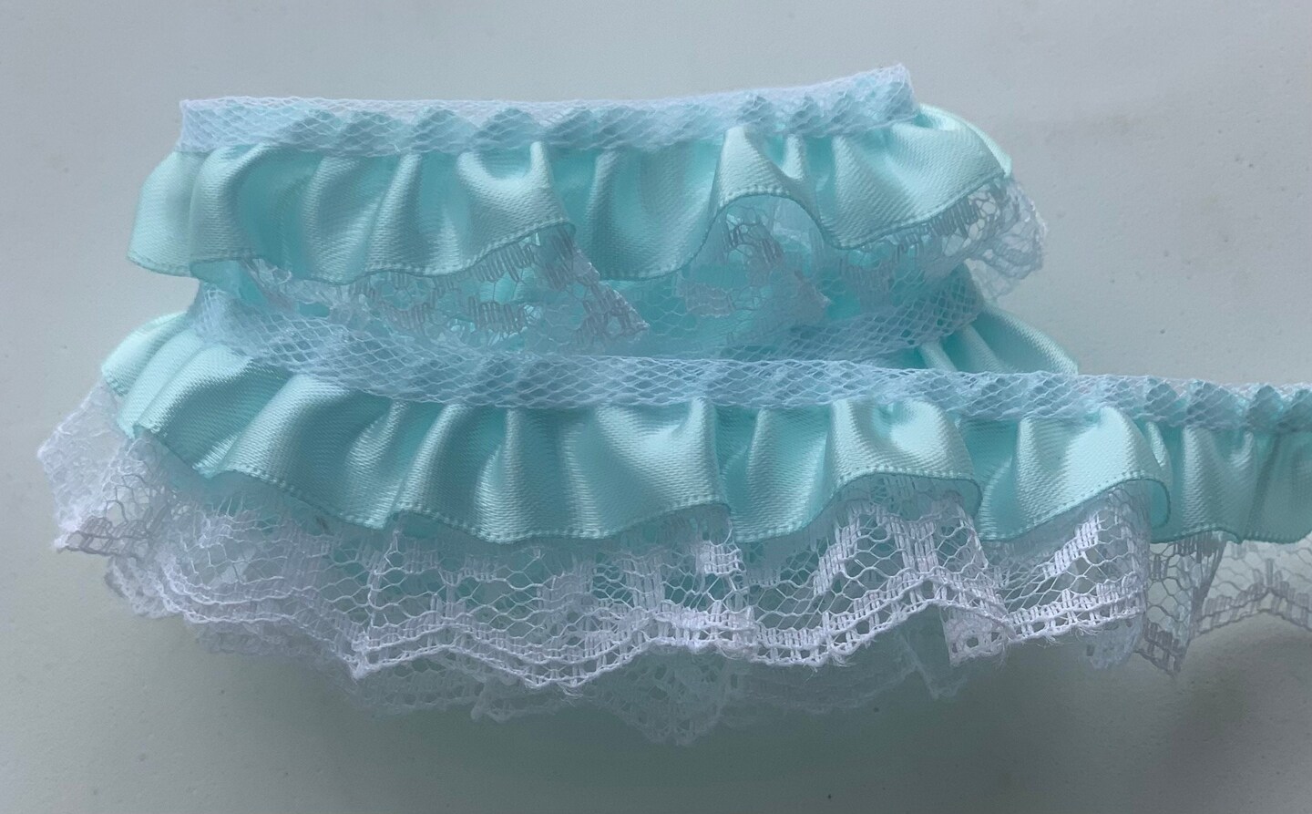 1" x 50 Yards Aqua Ruffled Lace Trim
