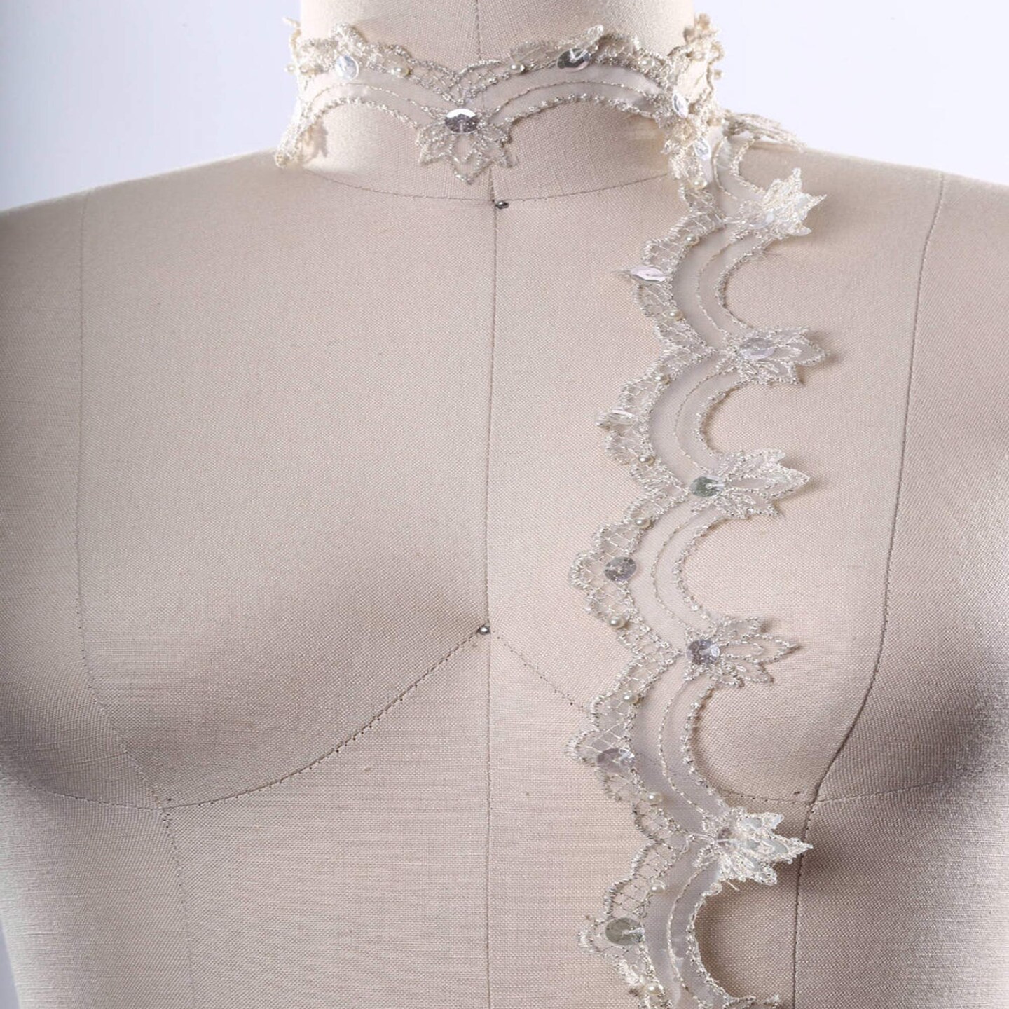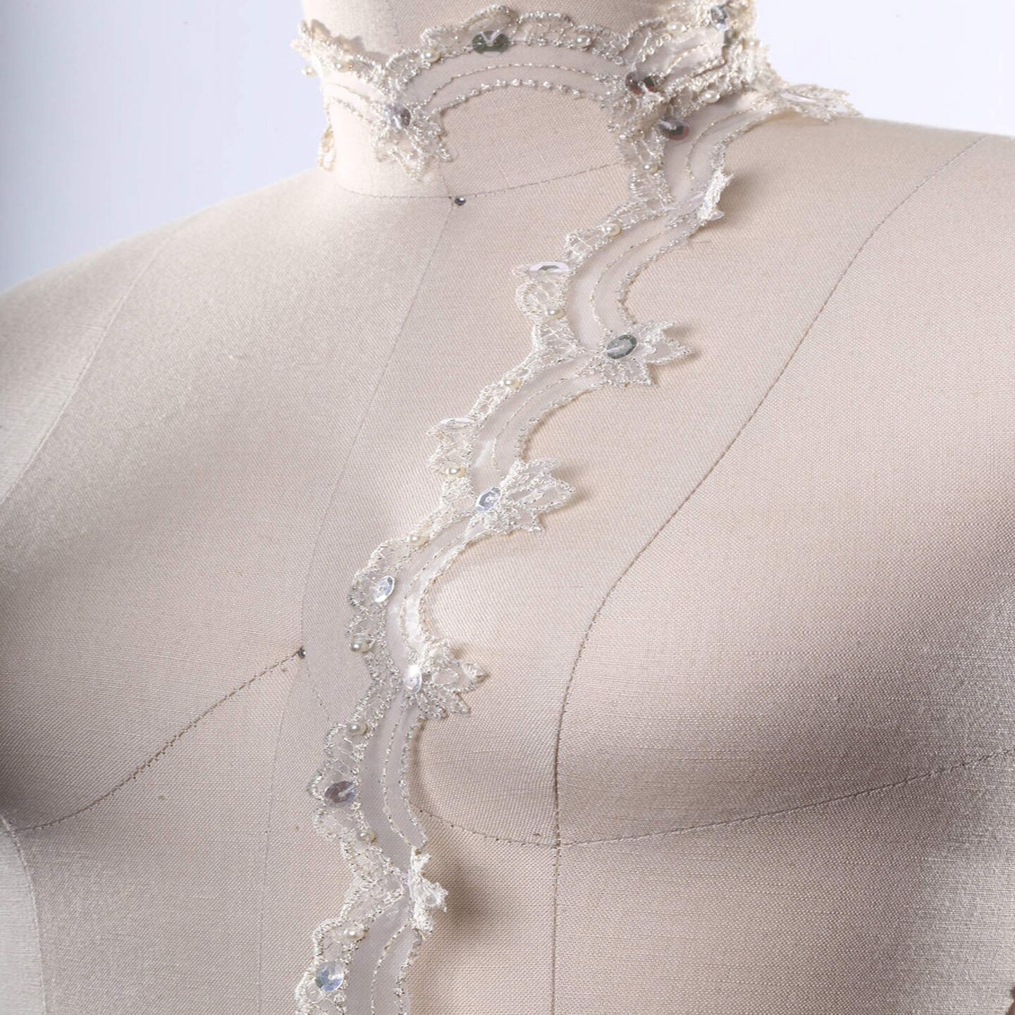 1 Yard 1 Inch Champagne Lace Trim with Beading and Silver Sequins