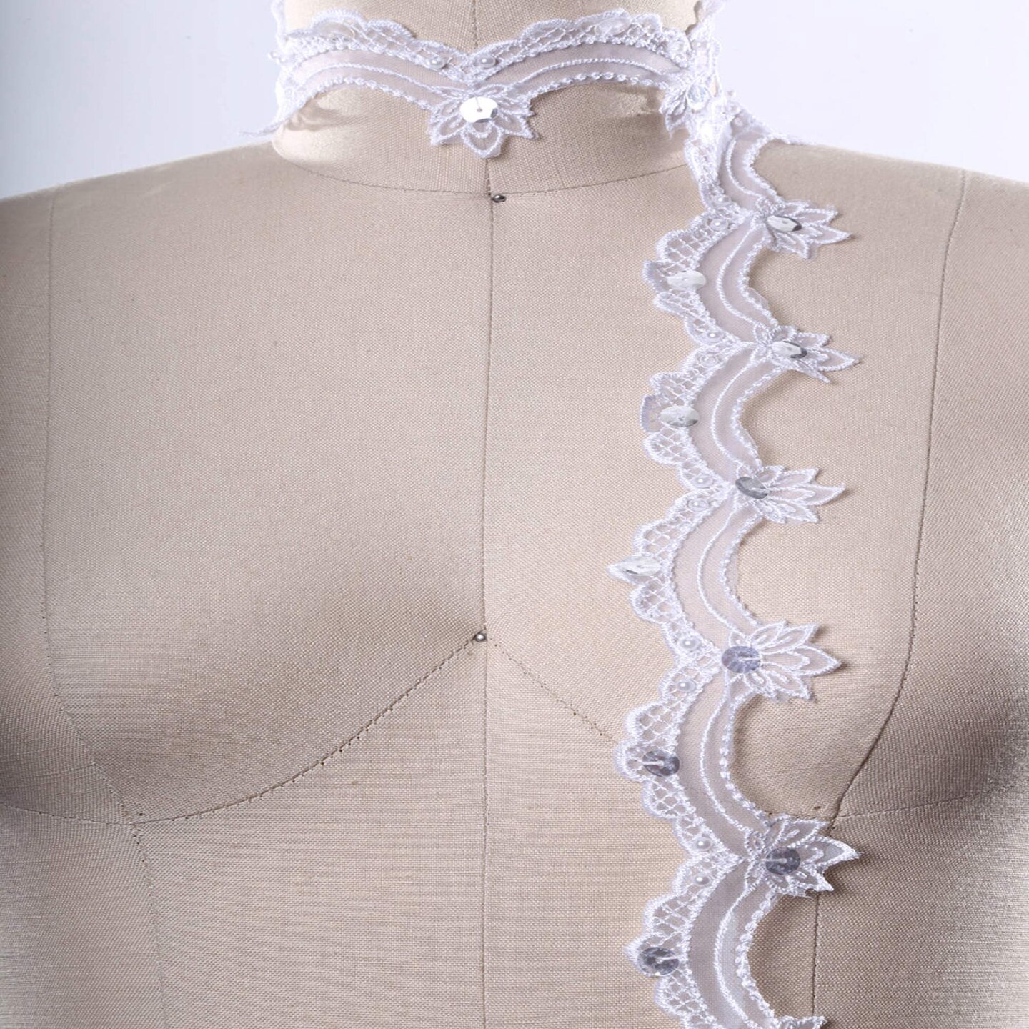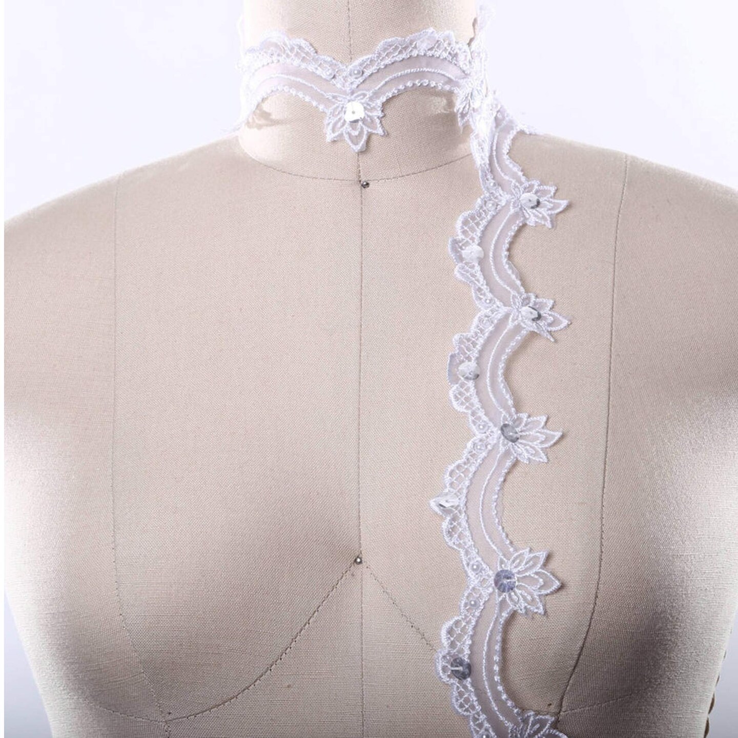 1 Yard 1 Inch White Sequined Polyester Bridal Flower Lace Trim