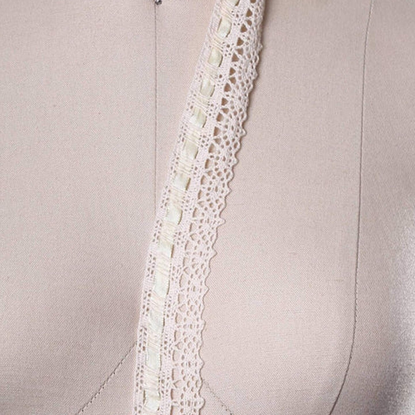 1 Yard 1.25" Beige Cotton Eyelet Cluny Lace Trim with Removable Ribbon Vintage Style