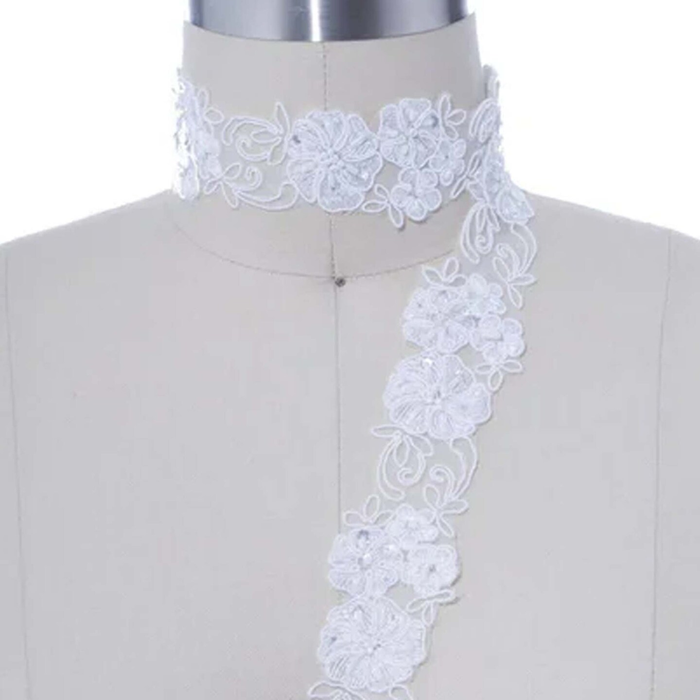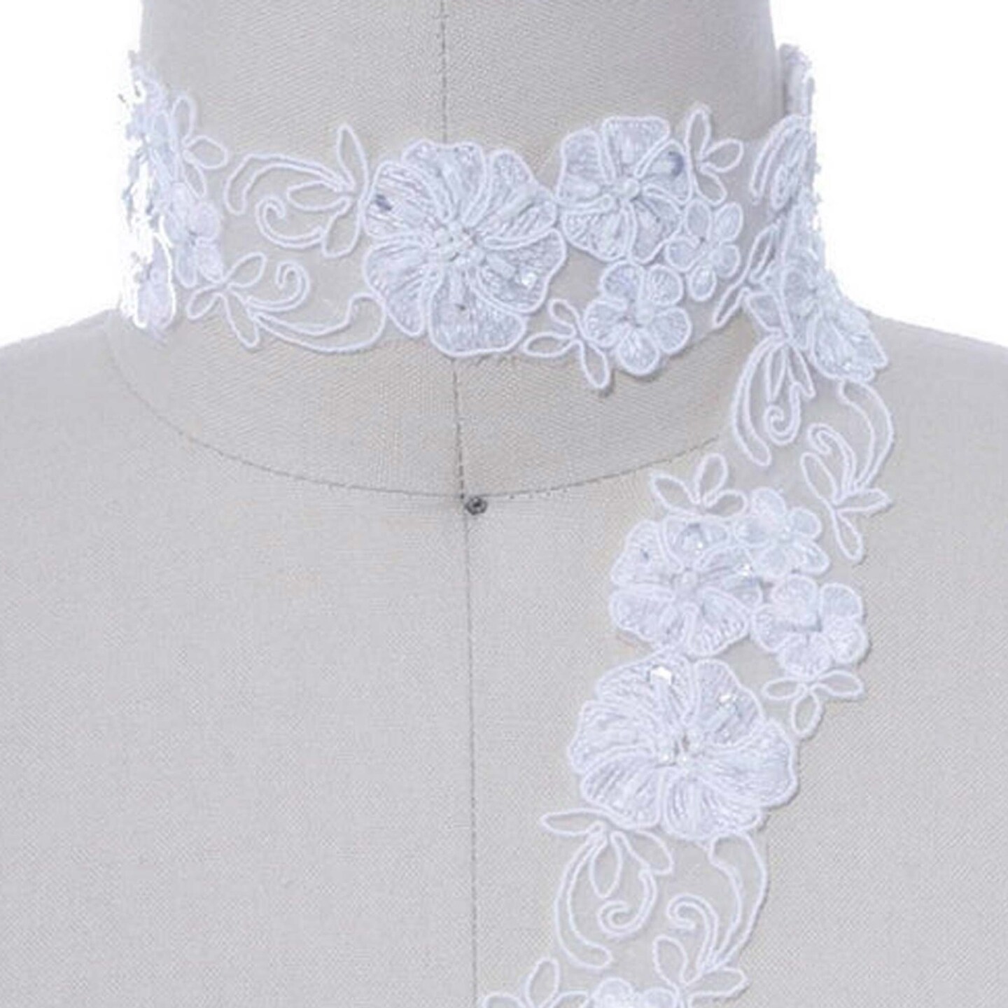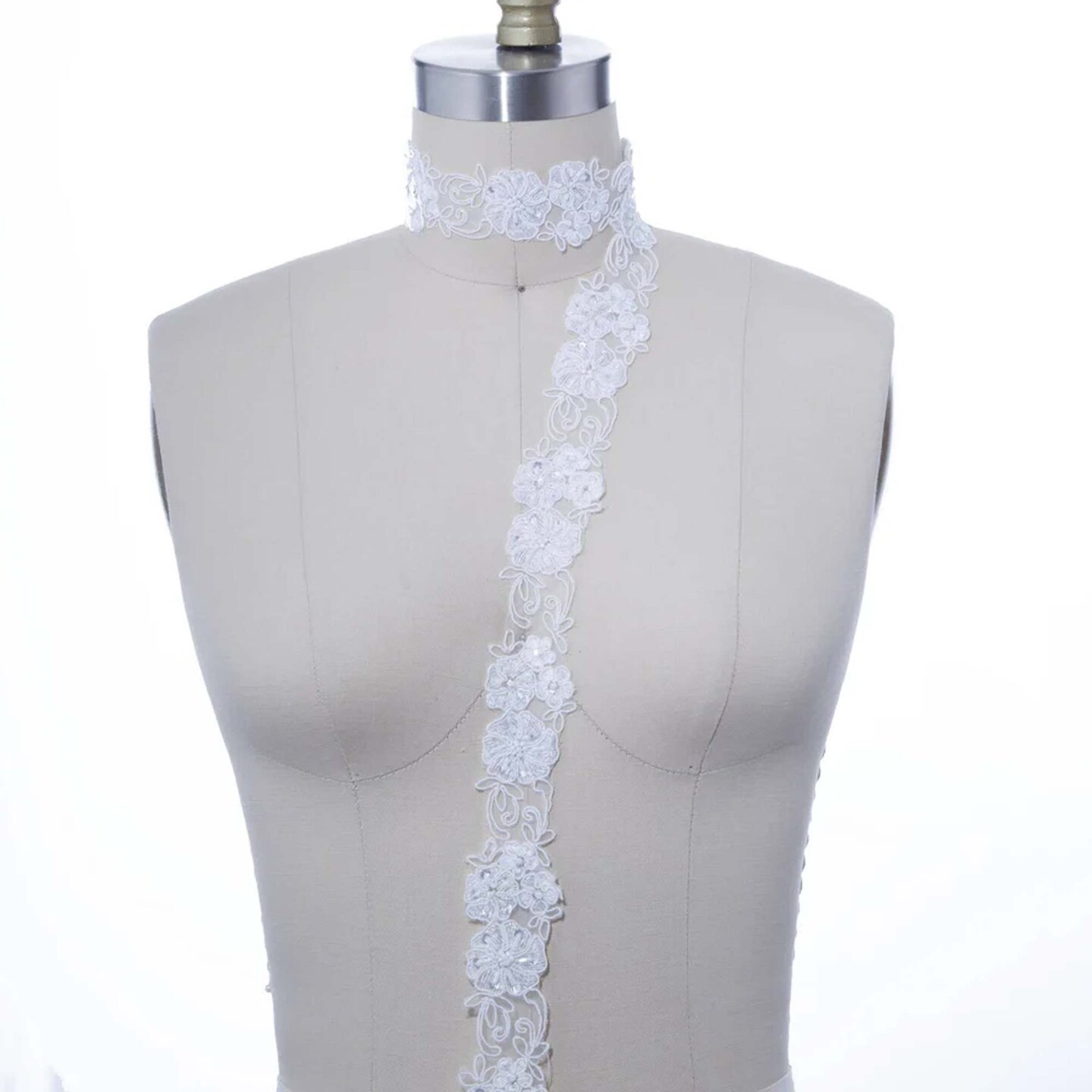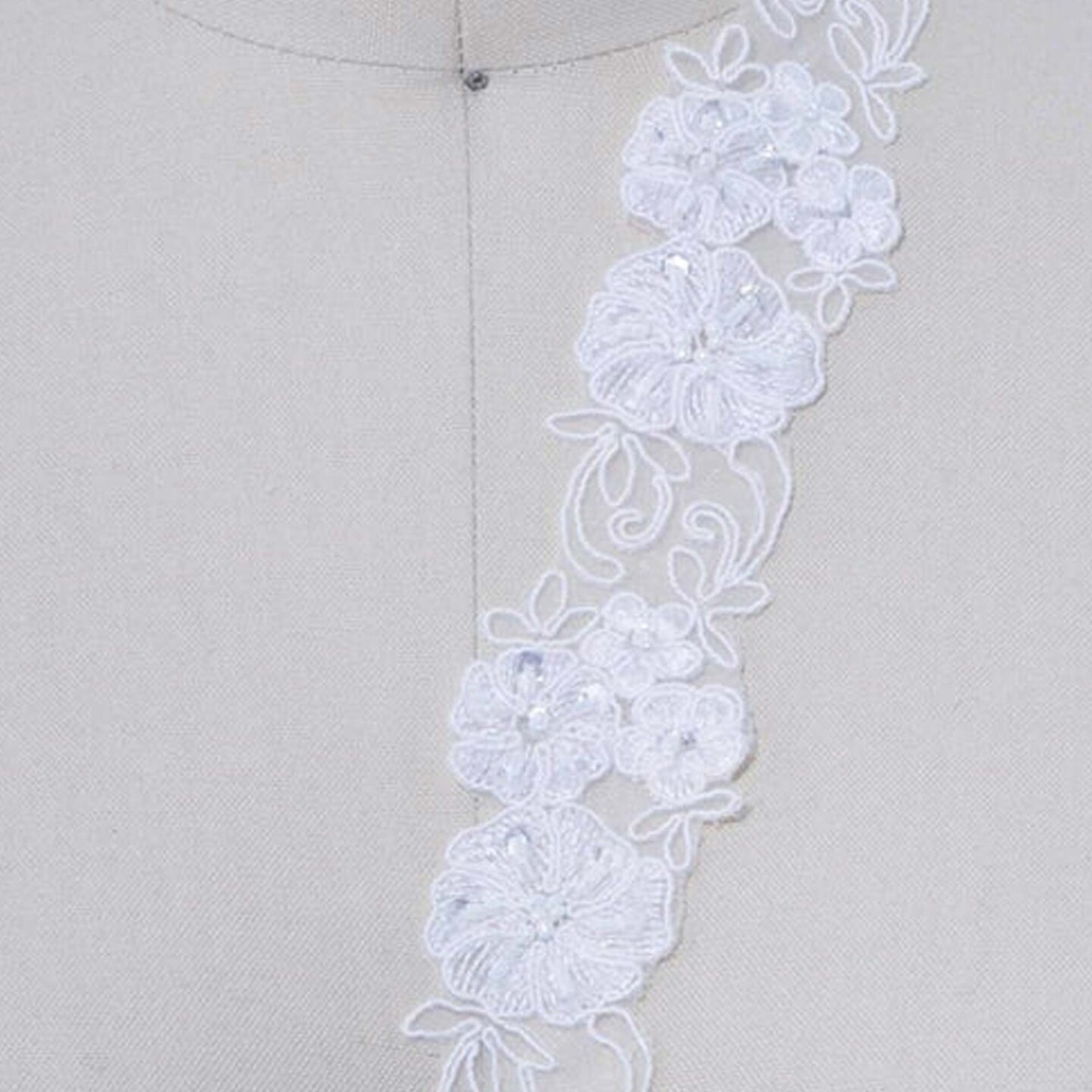 1 Yard 1.25" Ivory Sequin and Beaded Bridal Lace Floral Veil Chiffon Trim Elegant Bridal Access