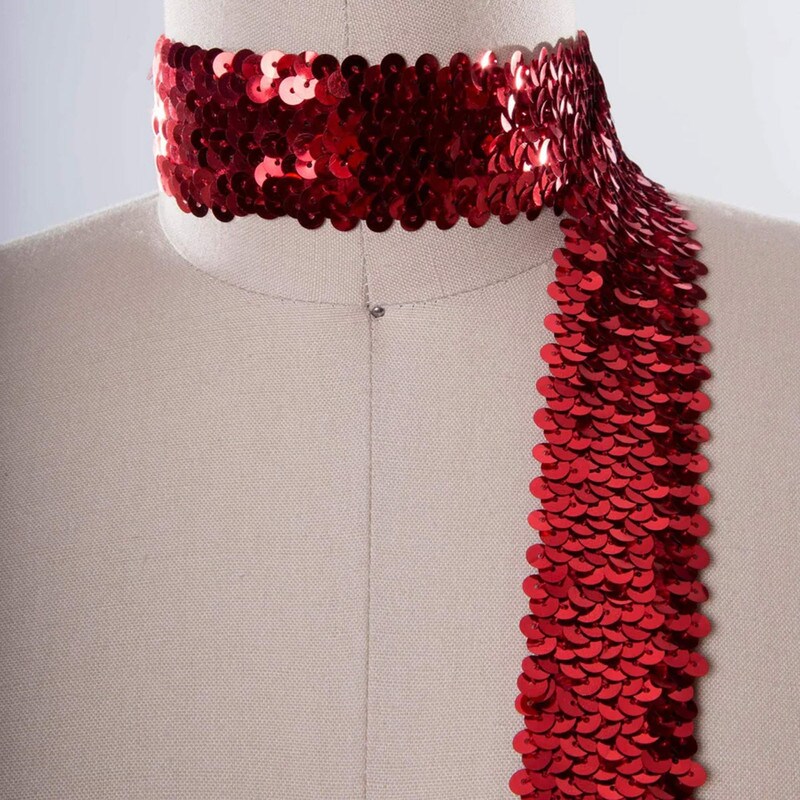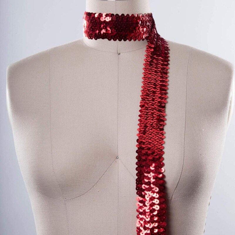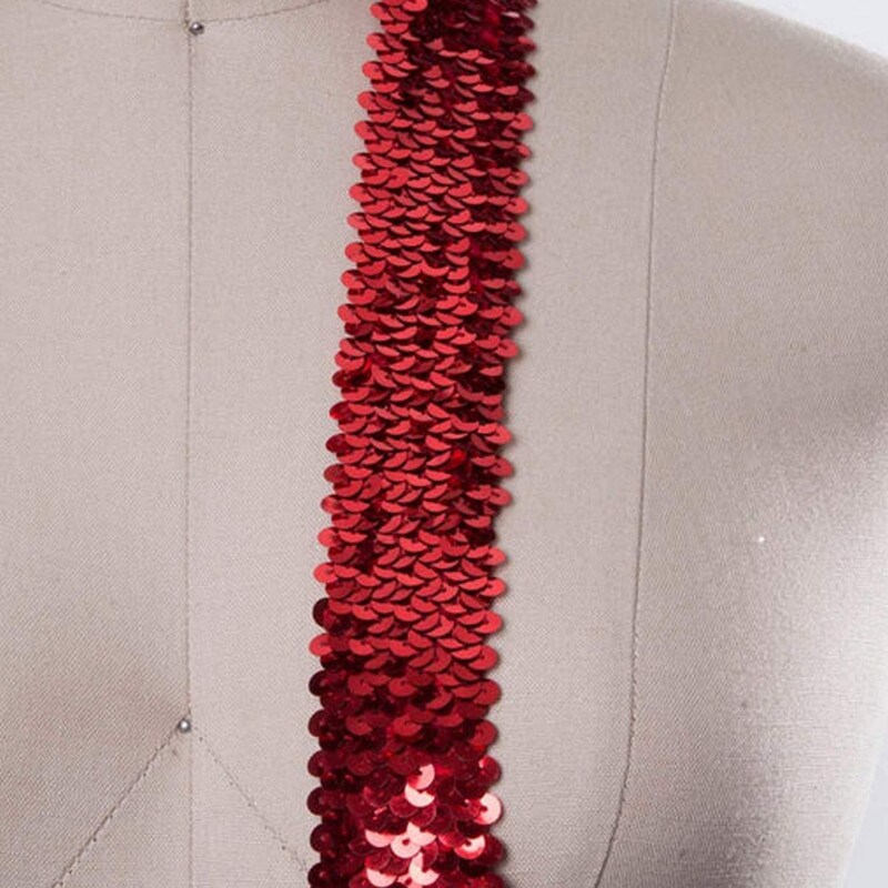 1 Yard 1.5" Red Stretch Sequin Trim