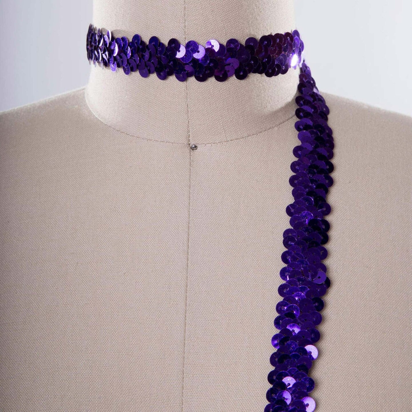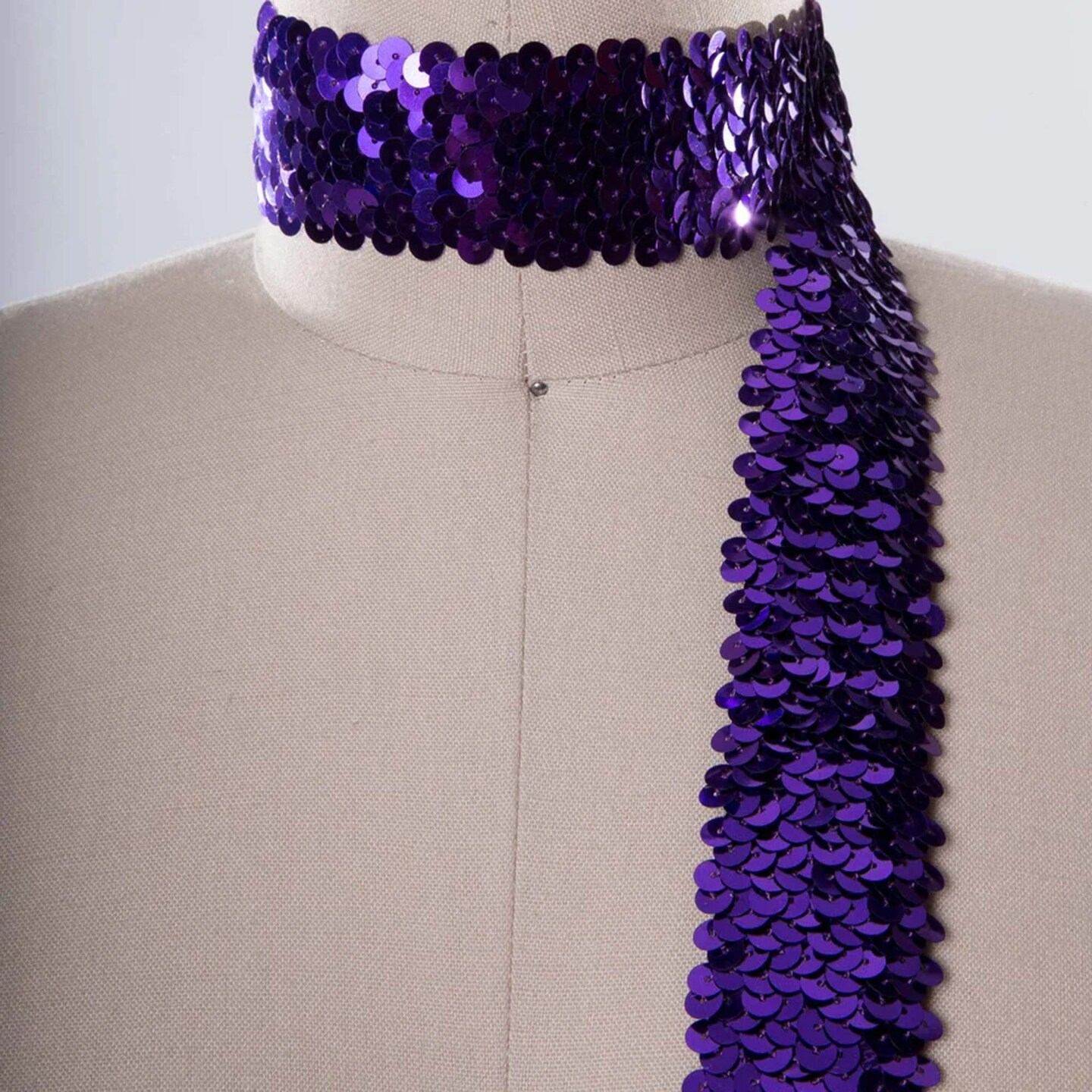 1 Yard 1.5" Wide Purple Stretch Sequin Trim Bold Sparkle for Costumes, Headbands & Decor