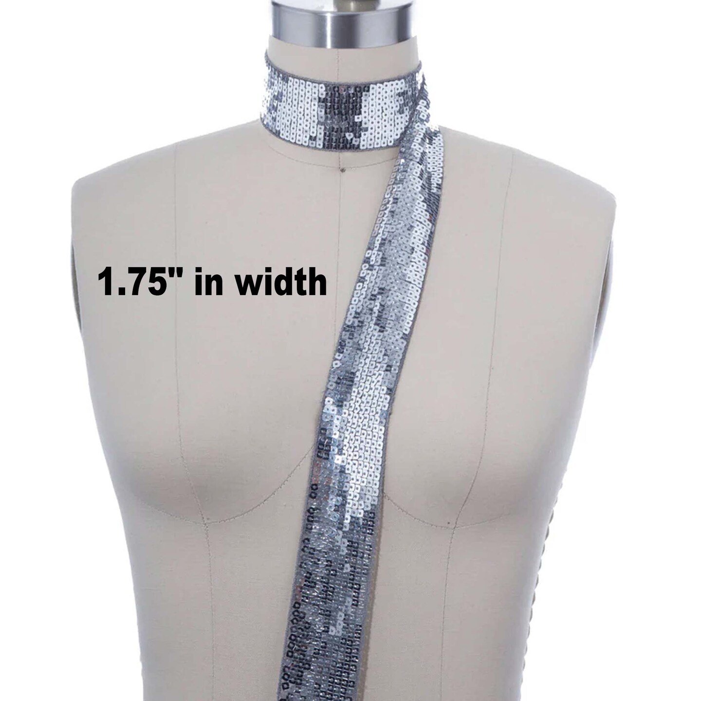 1 Yard 1.75" Wide Silver Sequin Ribbon Trim Non-Stretch Square Sequin Trim