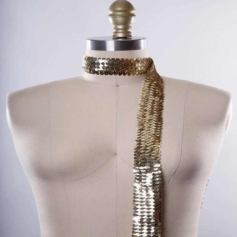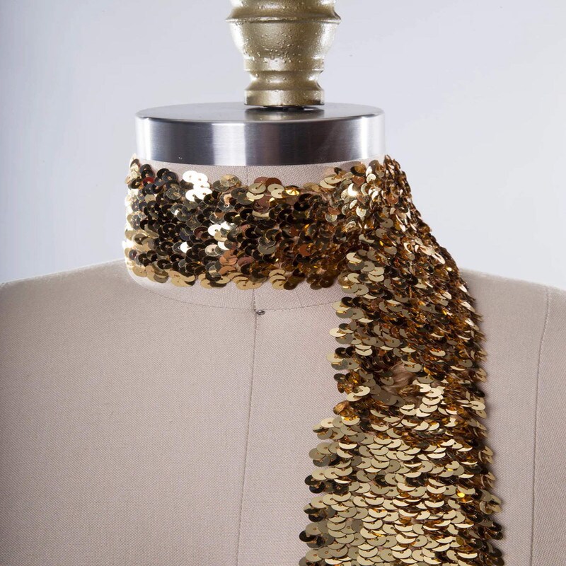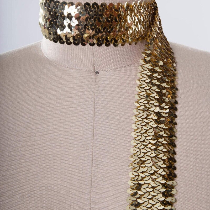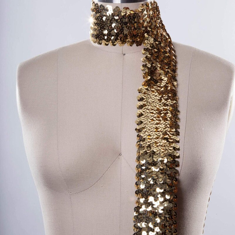 1 Yard 2.5" Antique Gold Stretch Sequin Ultra Wide Trim