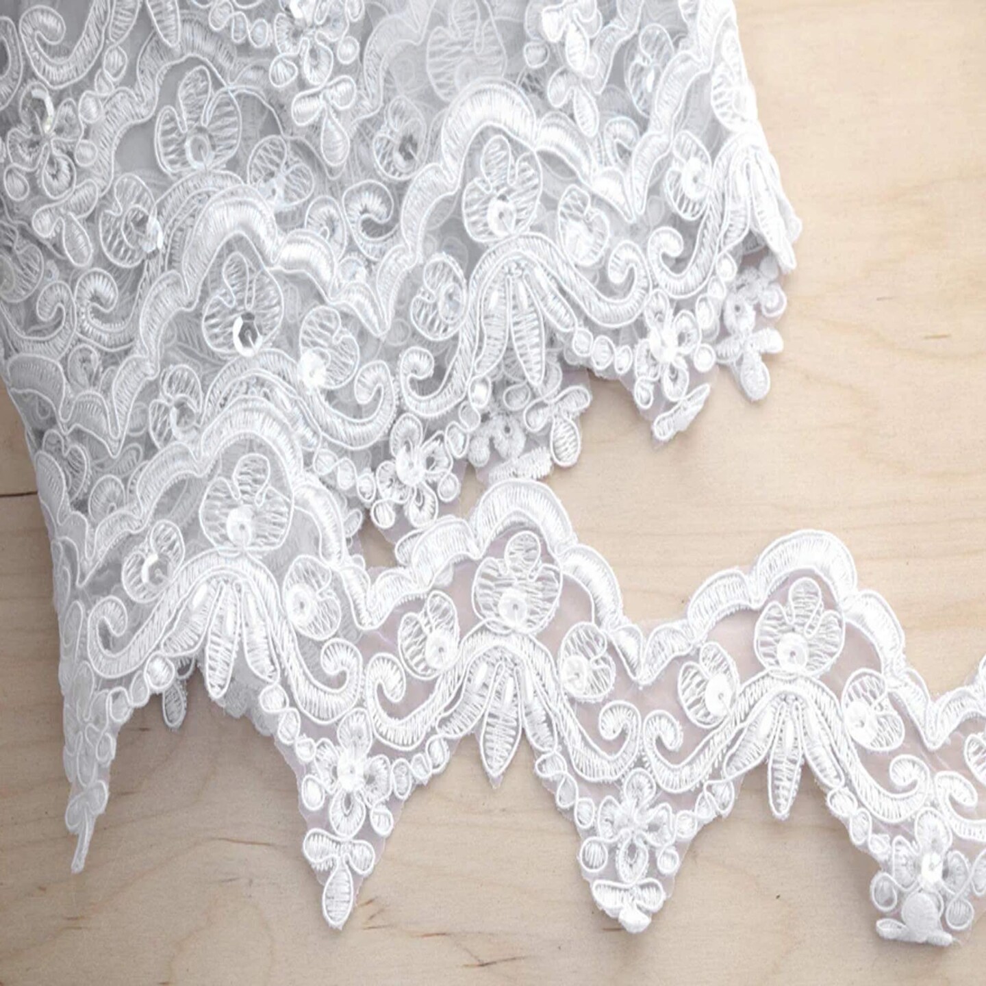 1 Yard 2.5 Inch Optic Ivory Sequin Beaded Bridal Lace Trim Organza Pearls for Veils and Edging