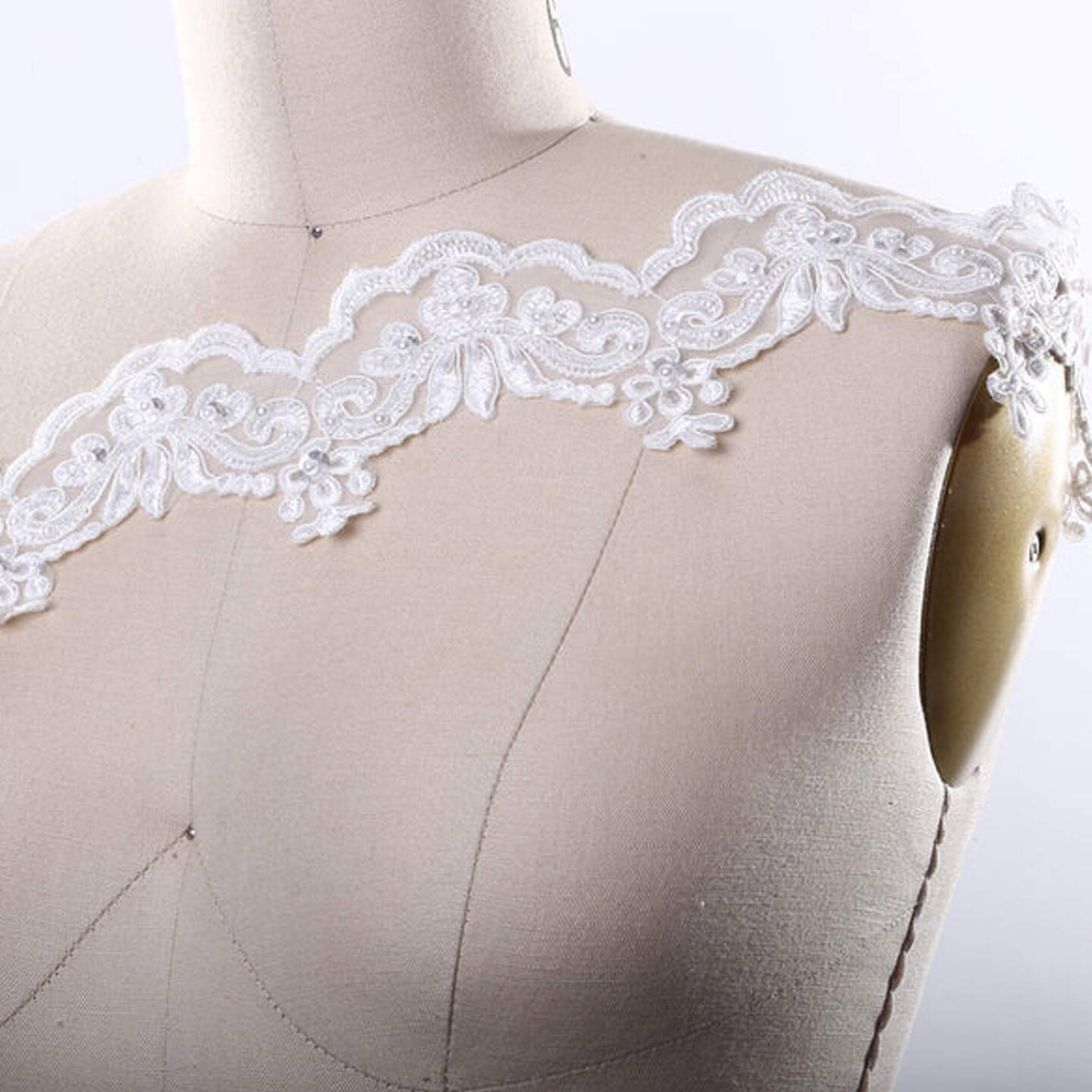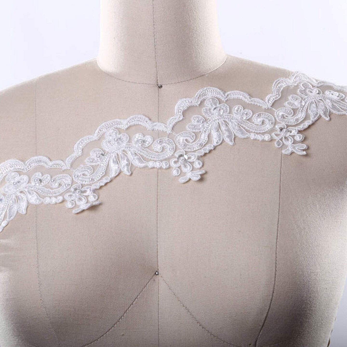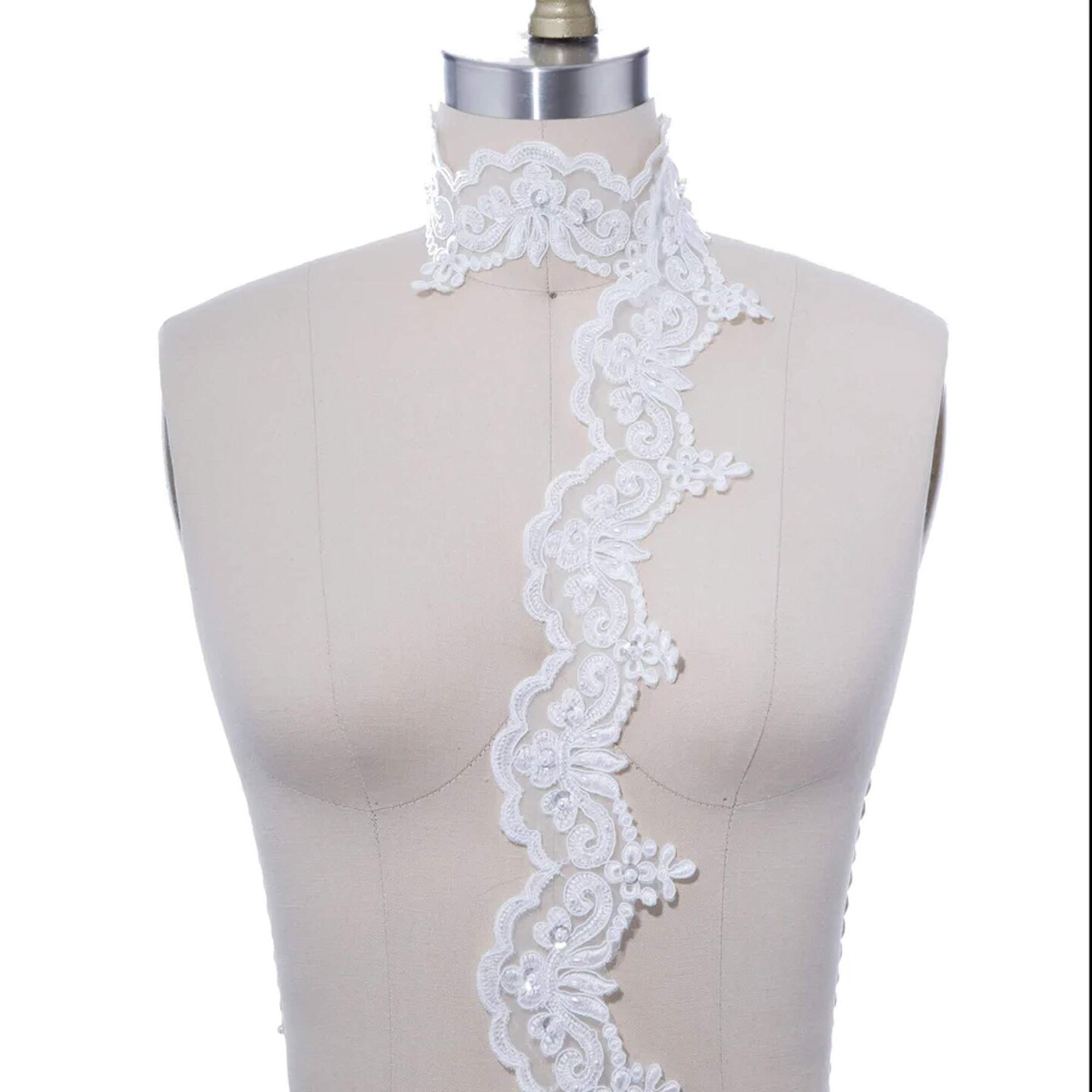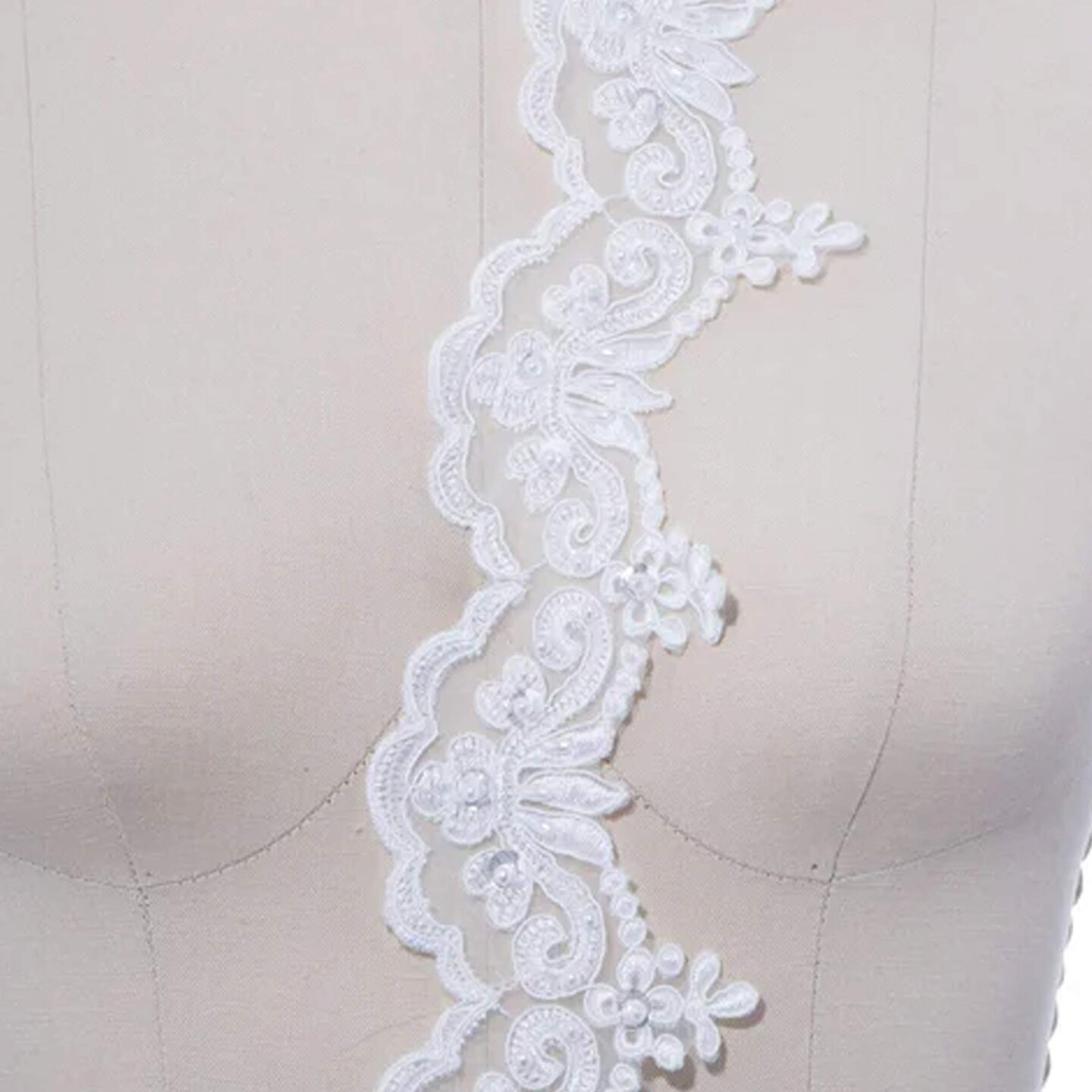 1 Yard 2.5 Inch White Bridal Lace Trim with Pearls and Sequins for Veils and Crafts