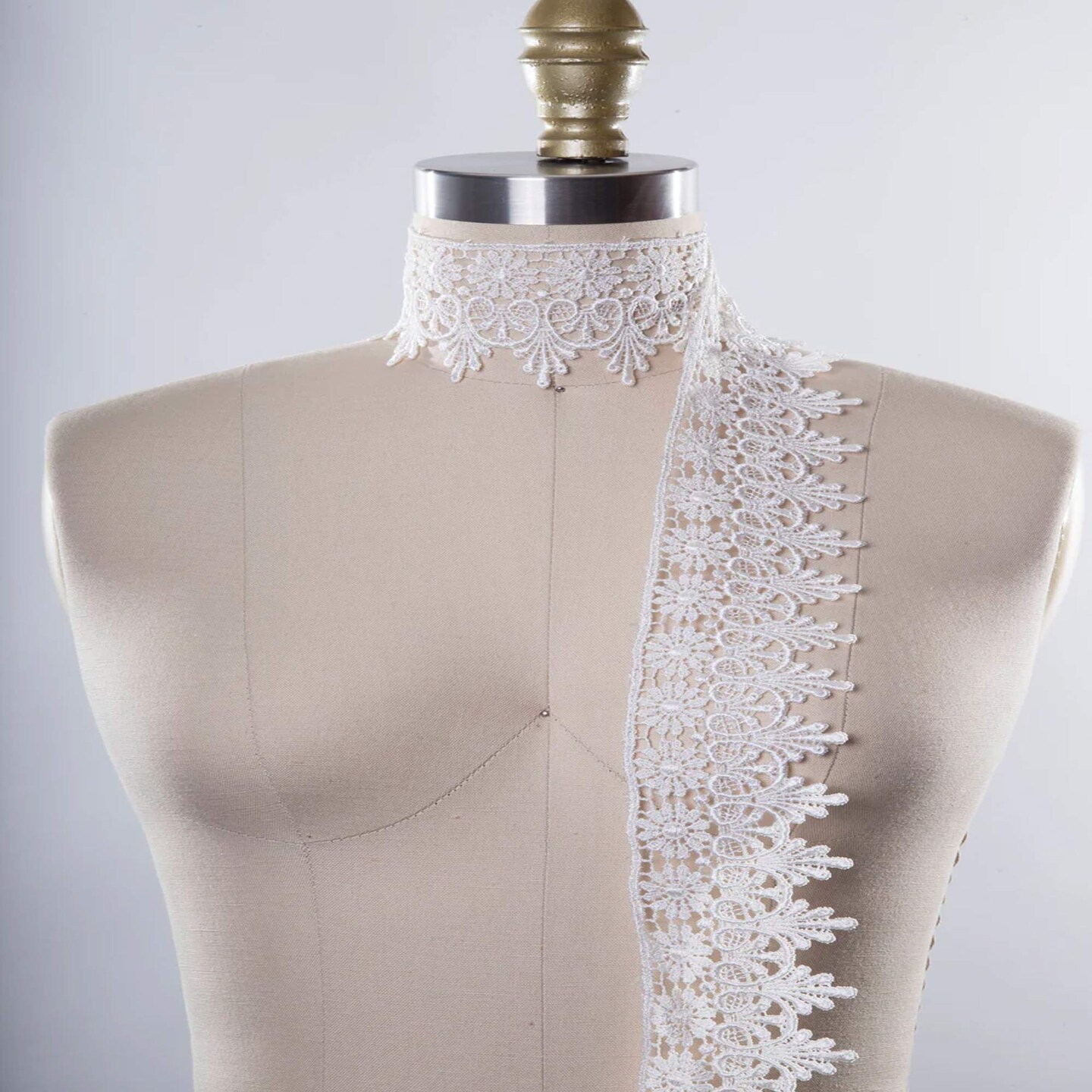 1 Yard 3 Inch Ivory Raven Floral Venice Lace Trim for Sewing and Crafts