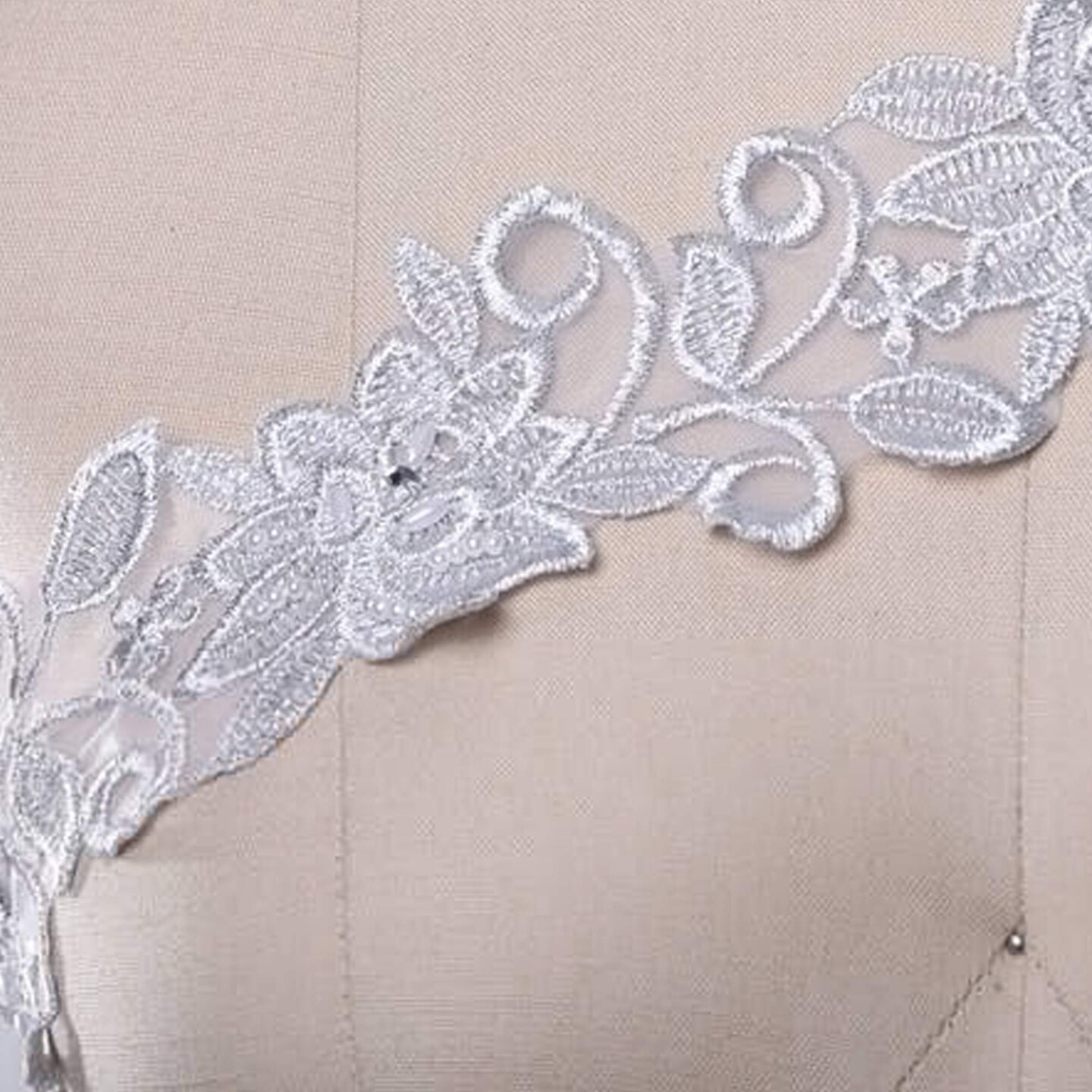 1 Yard 3 Inch Silver Beaded Floral Bridal Lace Trim on Organza