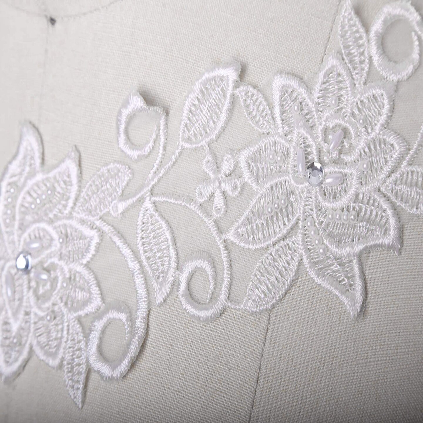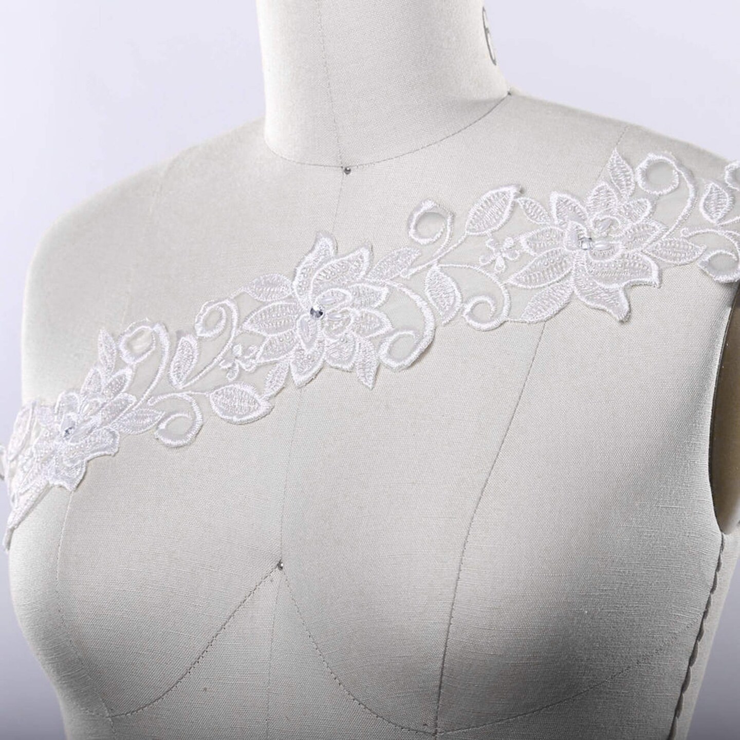 1 Yard 3 Inch White Beaded Floral Bridal Lace Trim on Organza