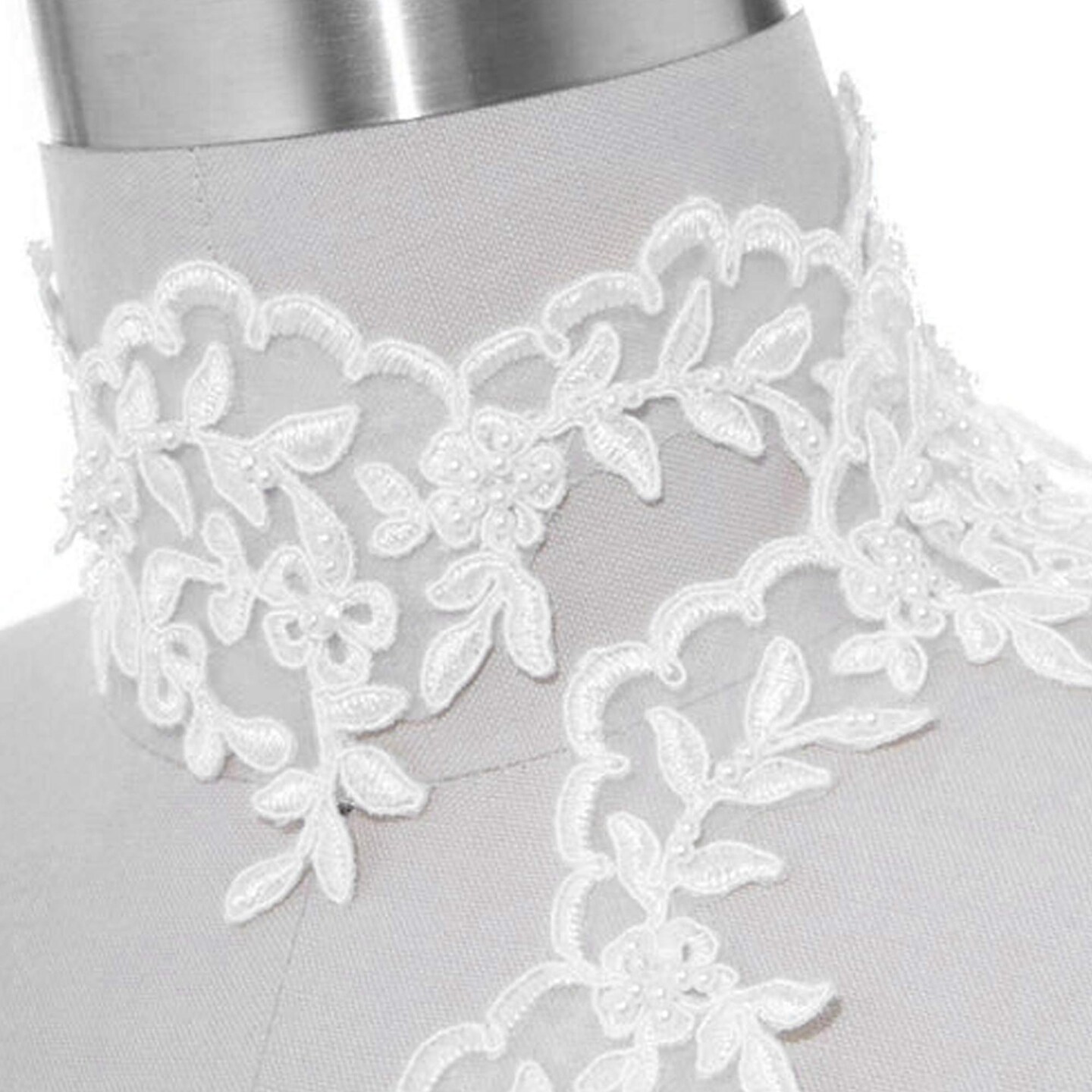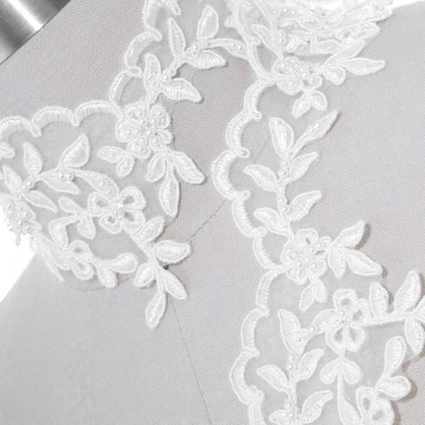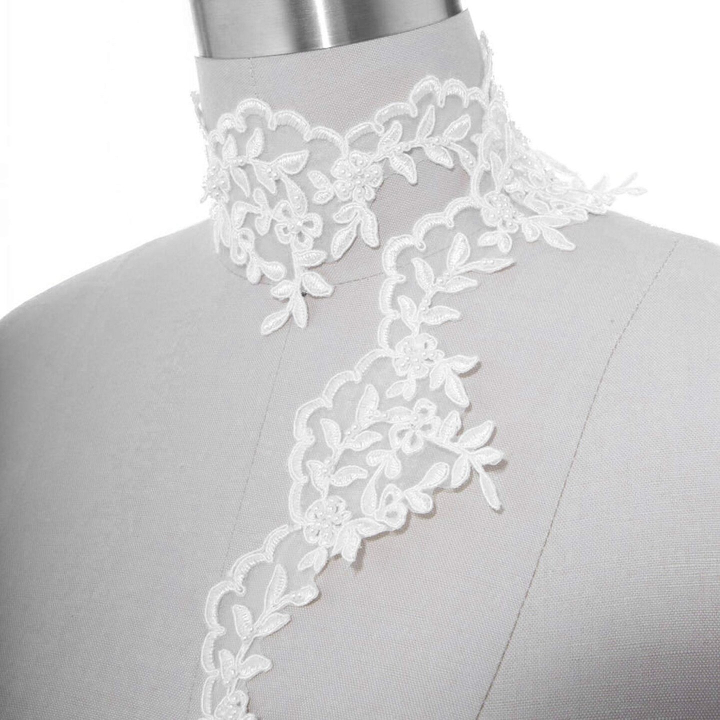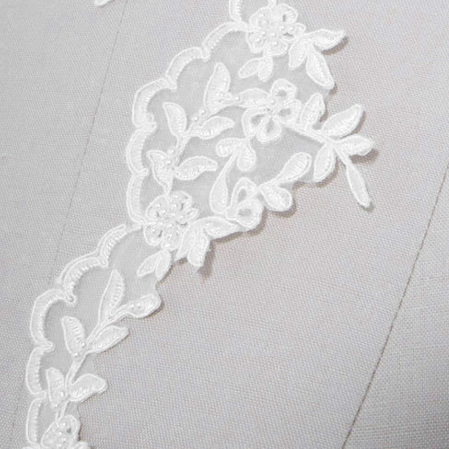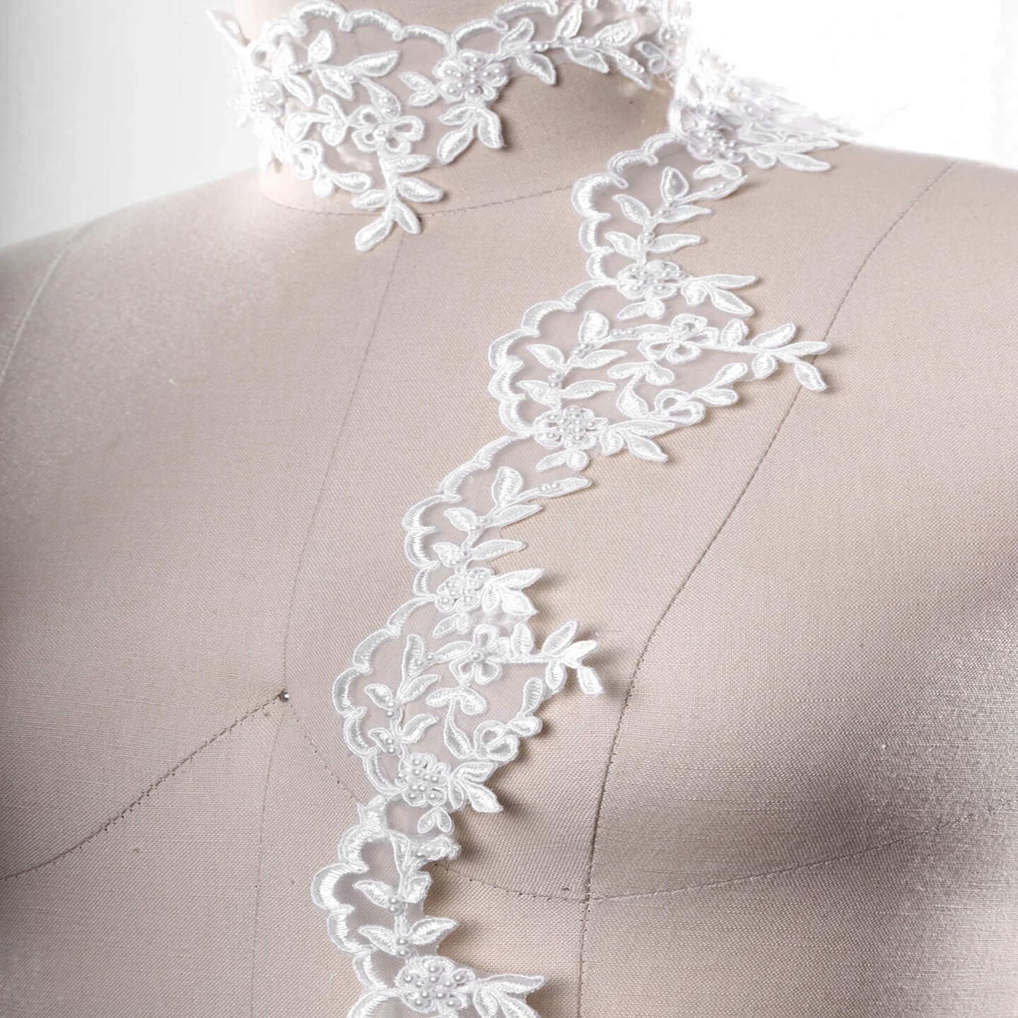 1 Yard 3 Inch Wide Ivory Polyester Bridal Lace Trim Leaf Motif Beaded Scalloped Edging
