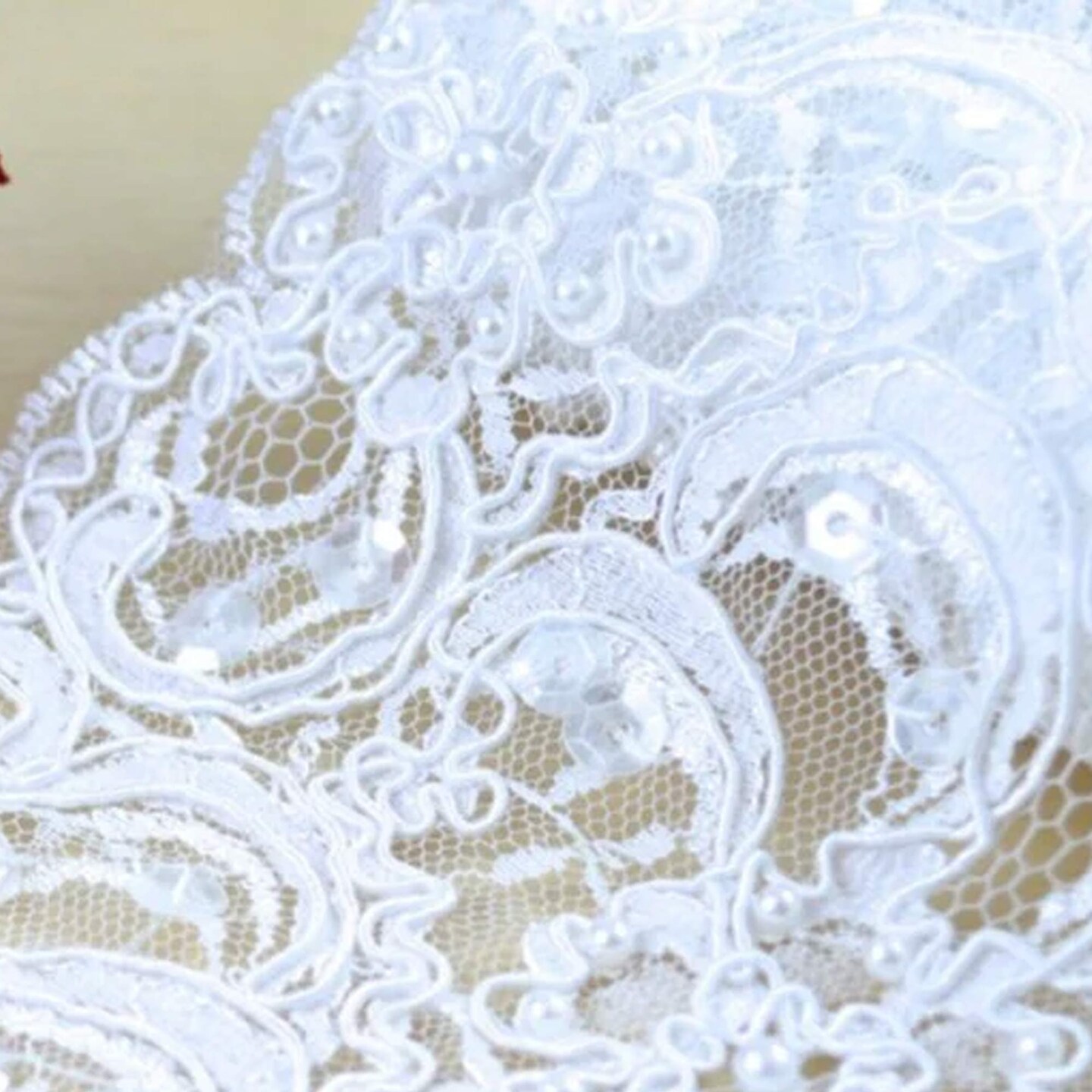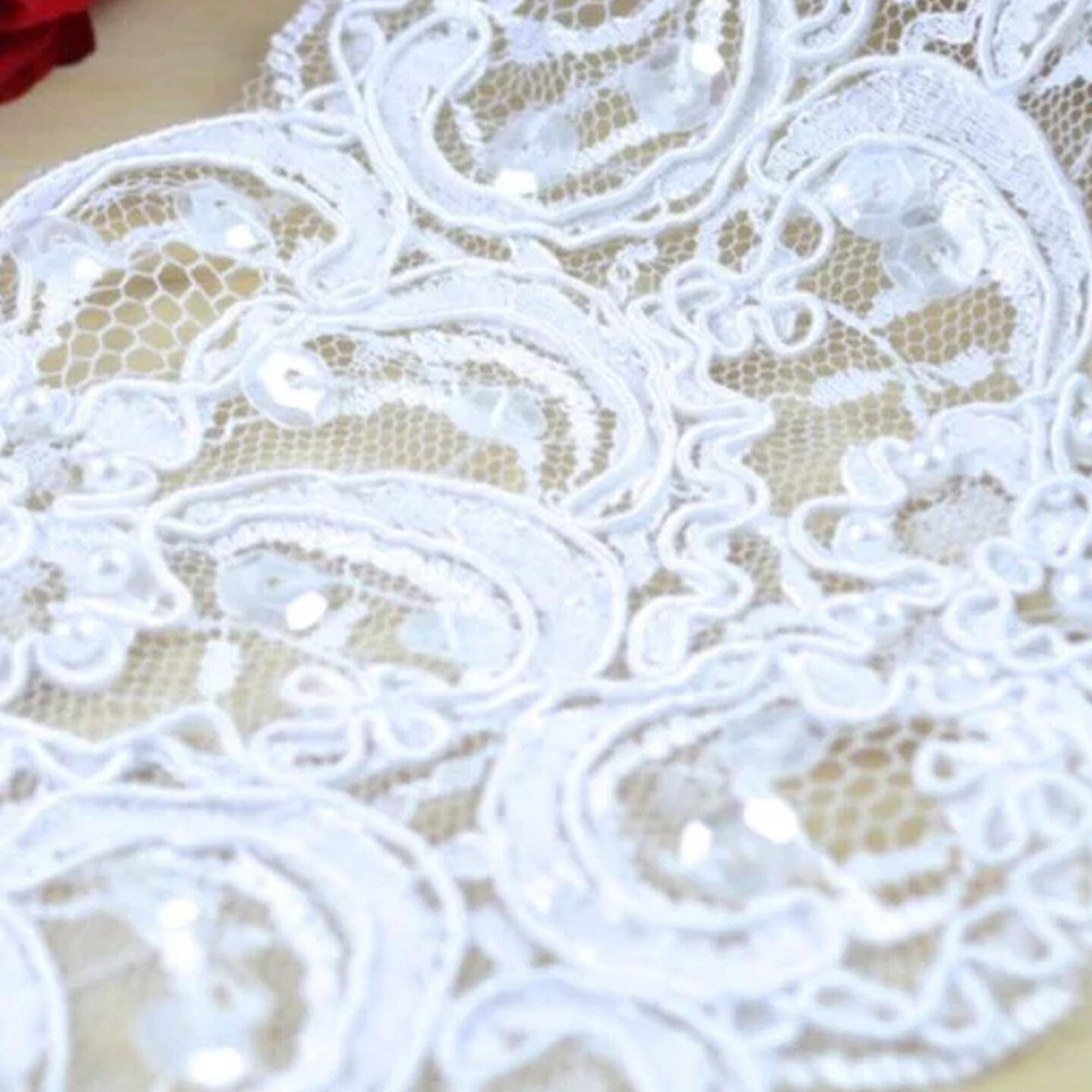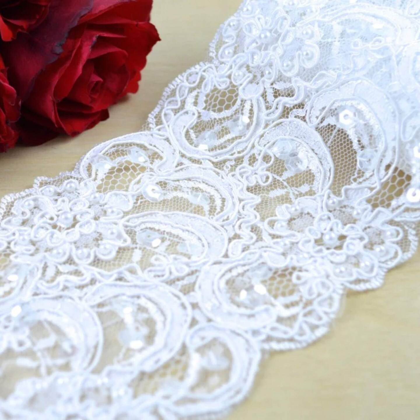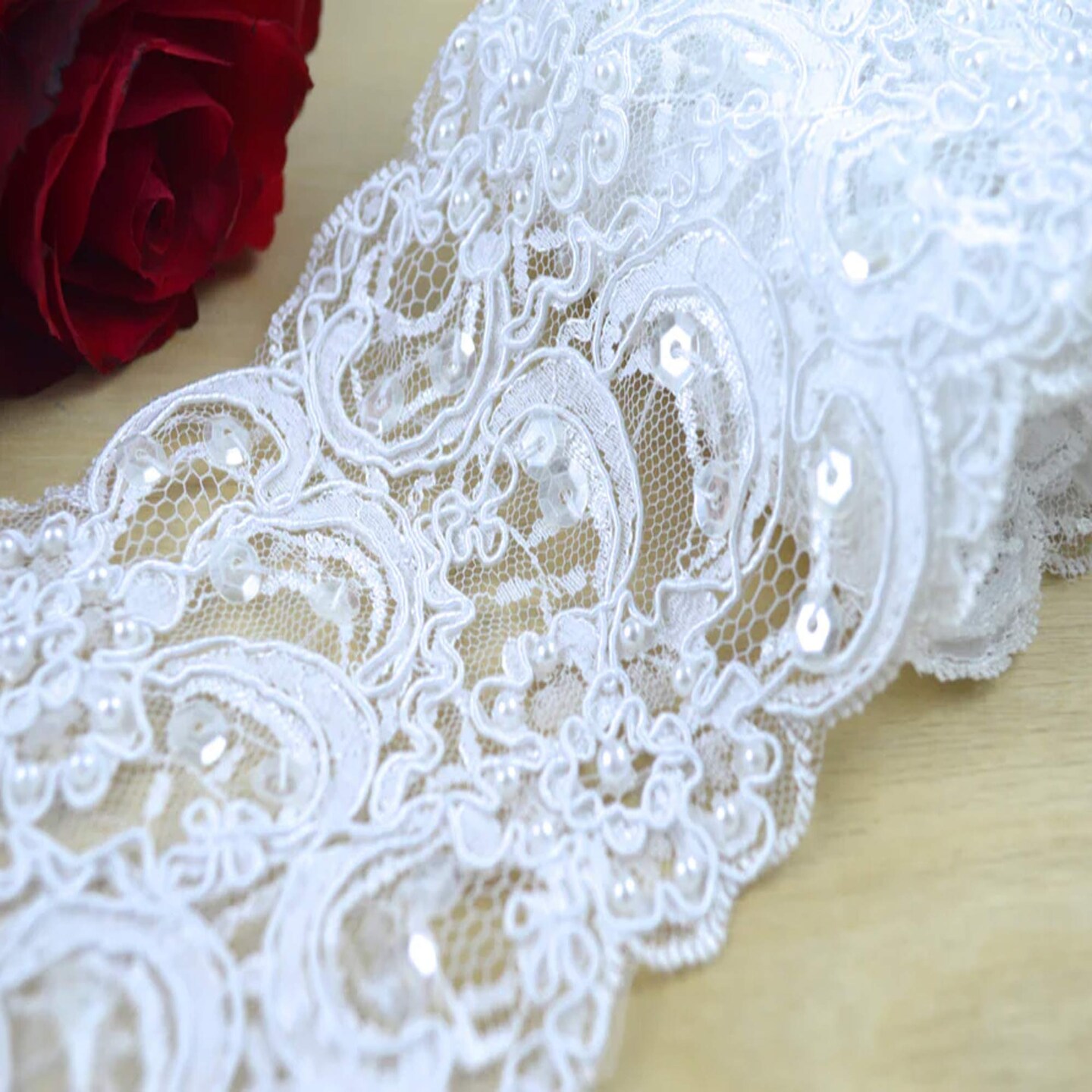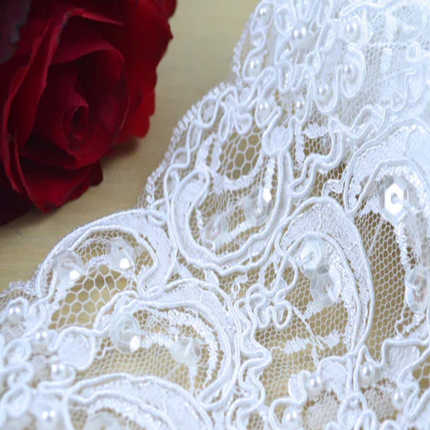 1 Yard 3.75" White Beading Cording Alencon Bridal Lace Trim