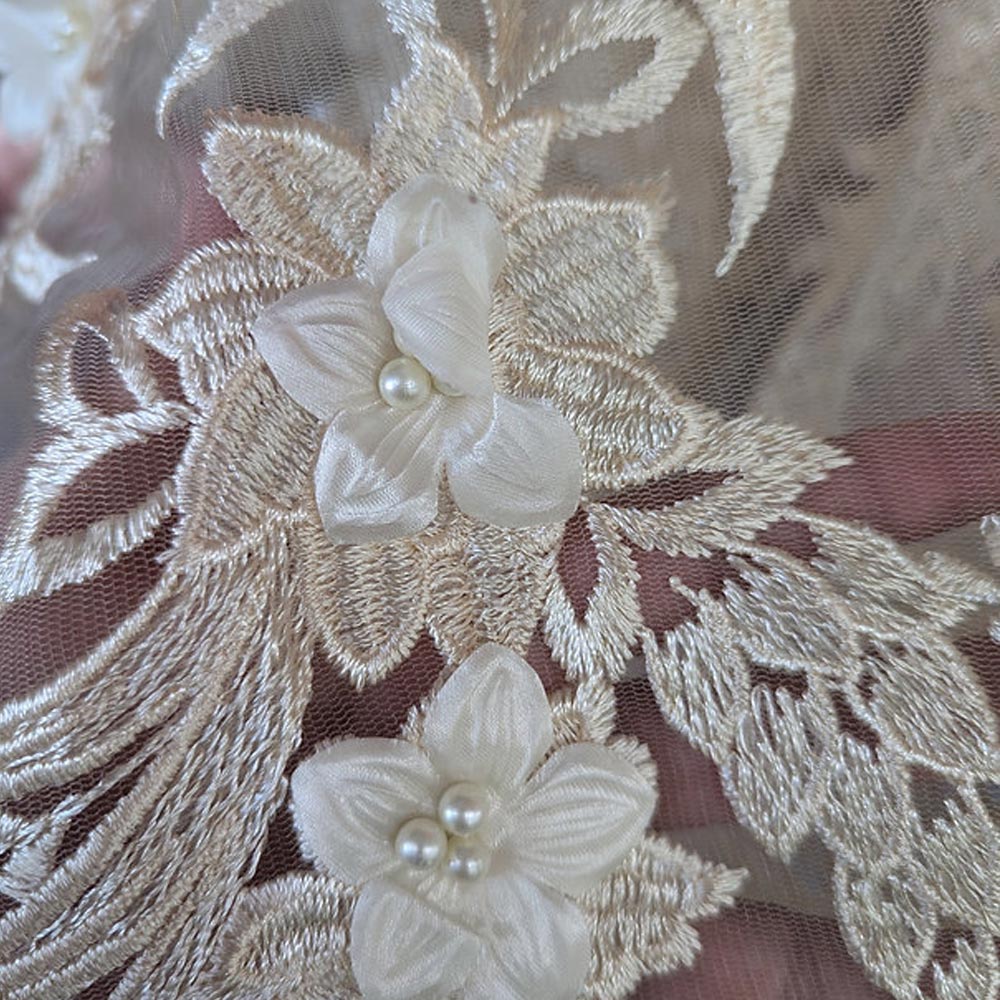 1 Yard 3D Embroidered 100% Polyester Flower Lace Mesh Fabric With Pearls 54/55 Inch Width