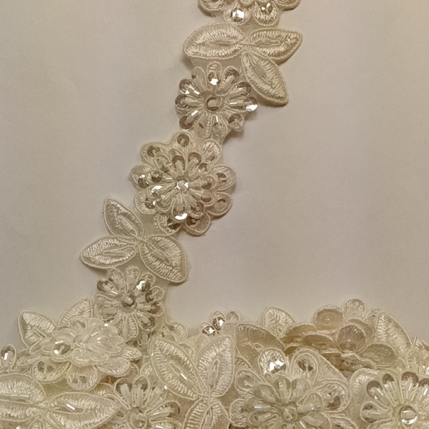 1 Yard 3D Floral Beaded & Corded Lace Trimming on 100% Polyester Organza 2″ Wide