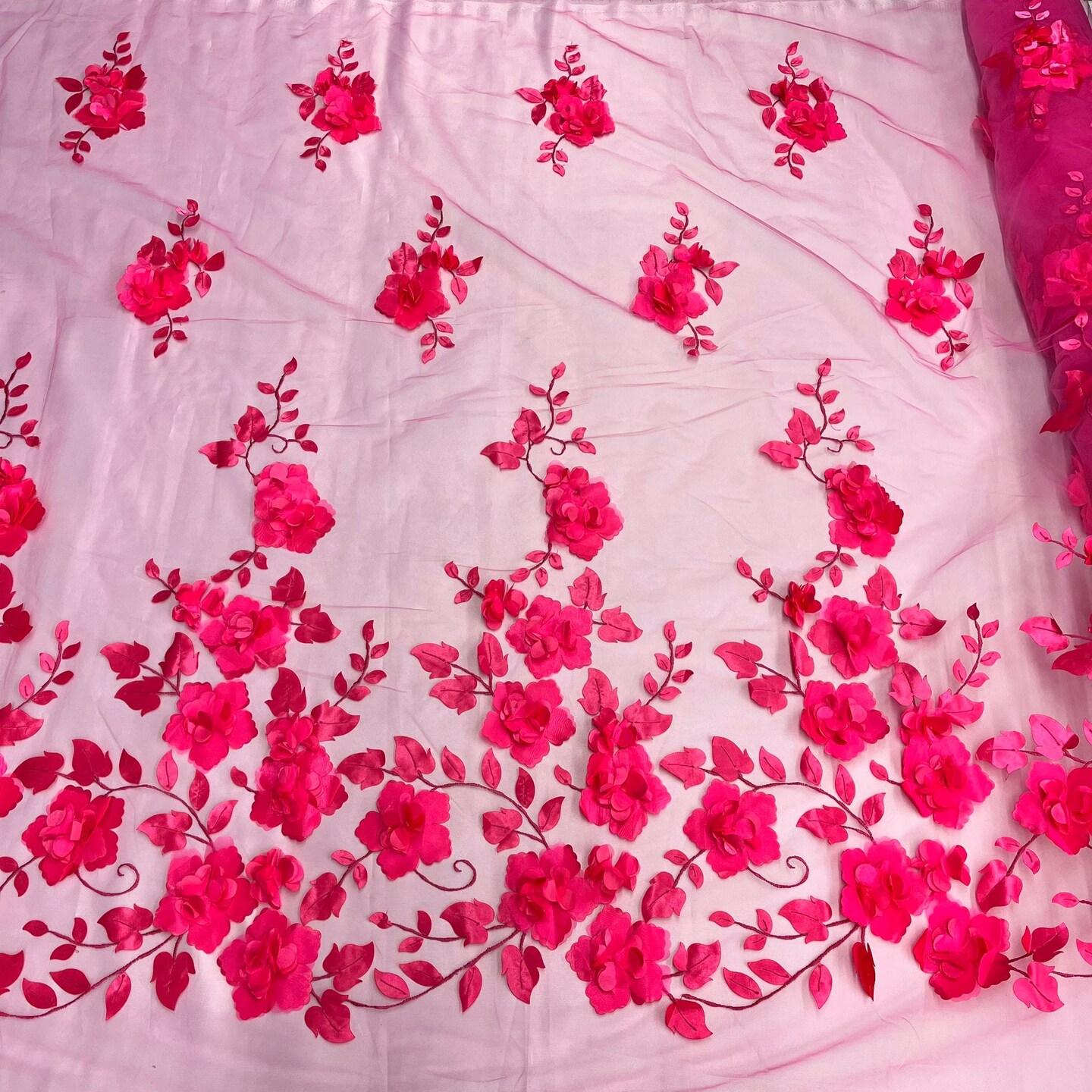 1 Yard 3D Floral Lace Fabric Embroidered Soft Tulle Net Mesh Wedding 50" Width