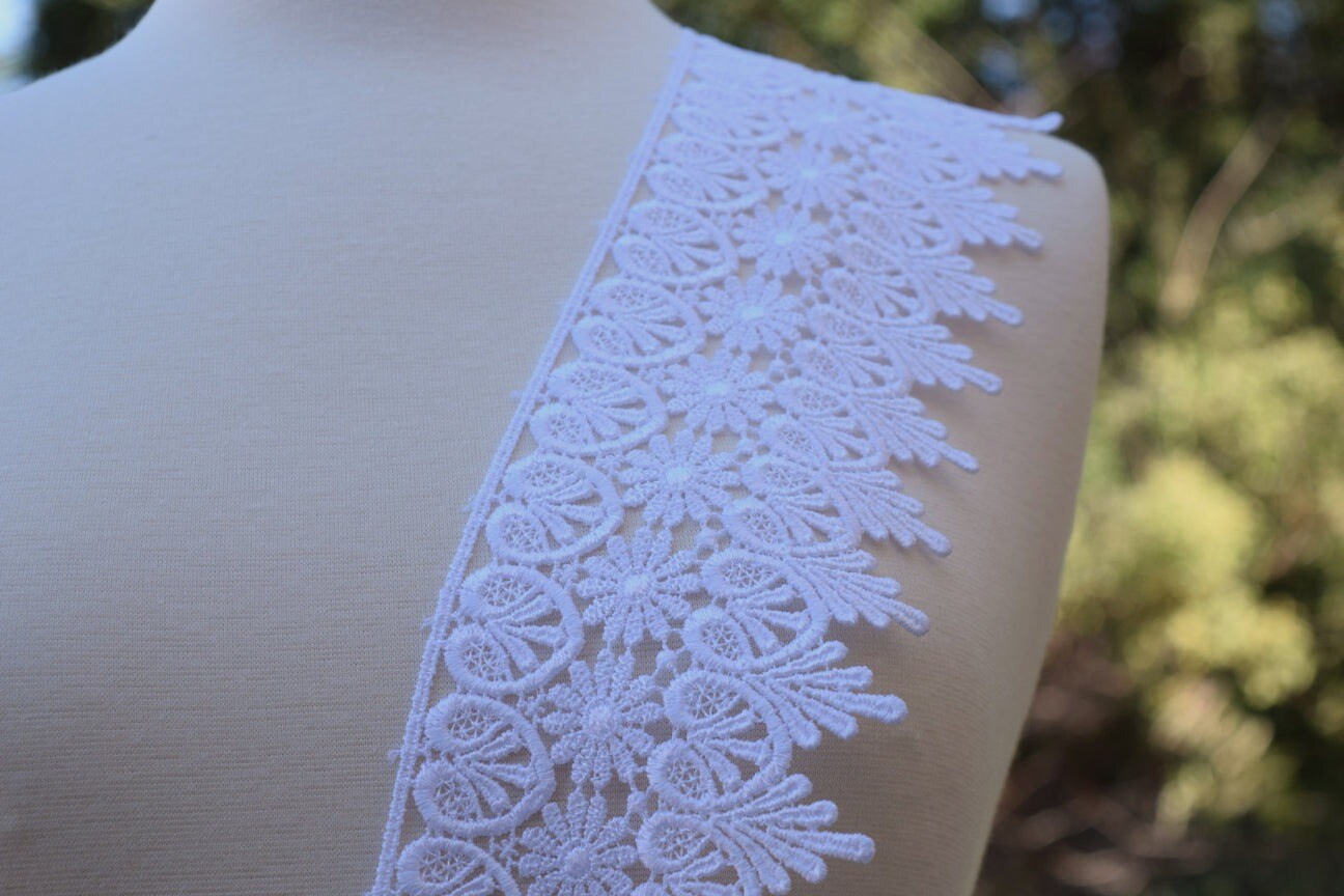 1 Yard 4" Fabienne's White Venice Lace Trim With Flowers Hearts And Leaves