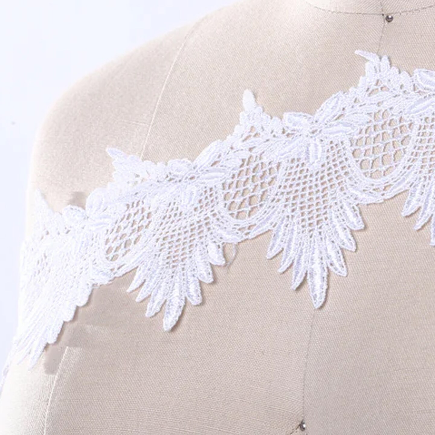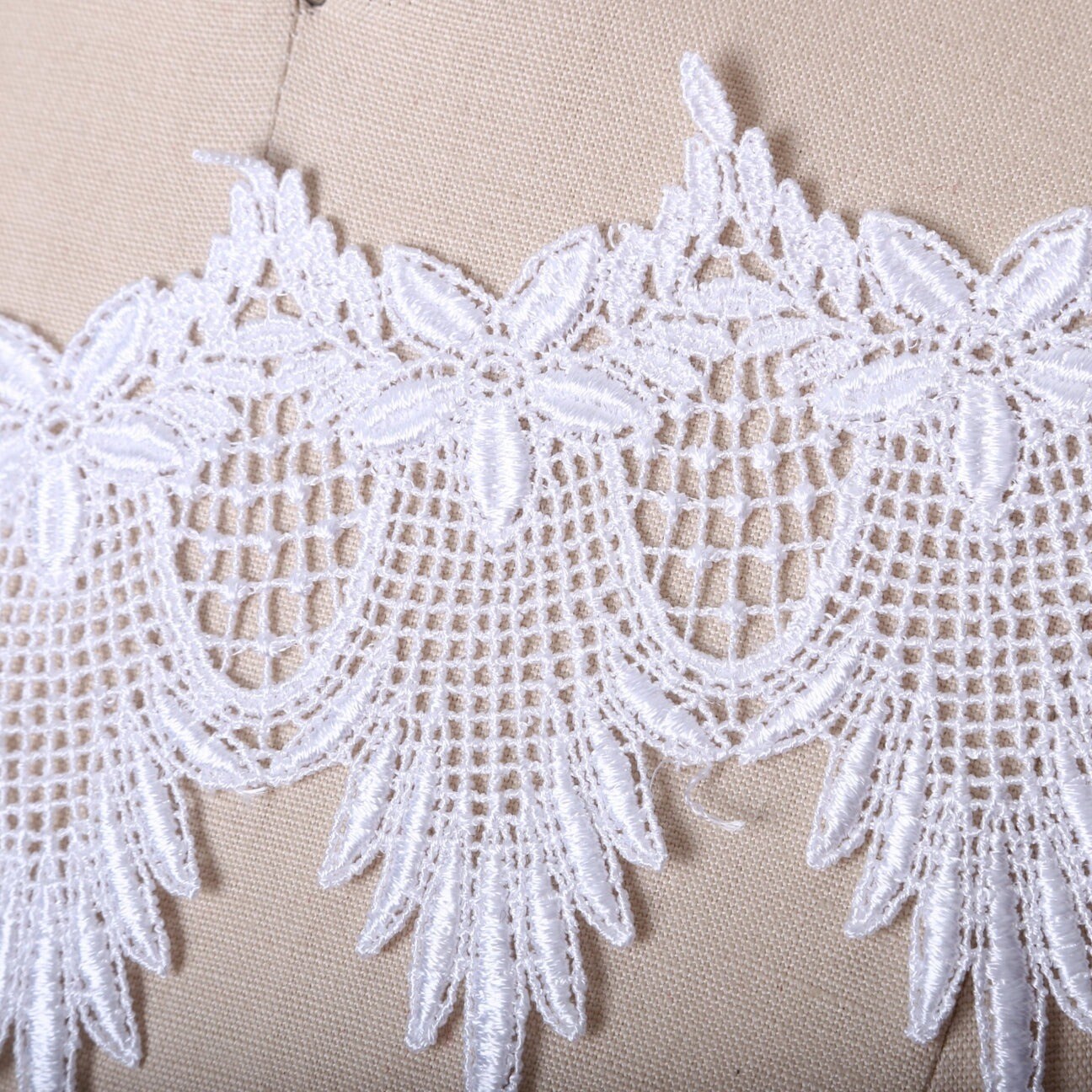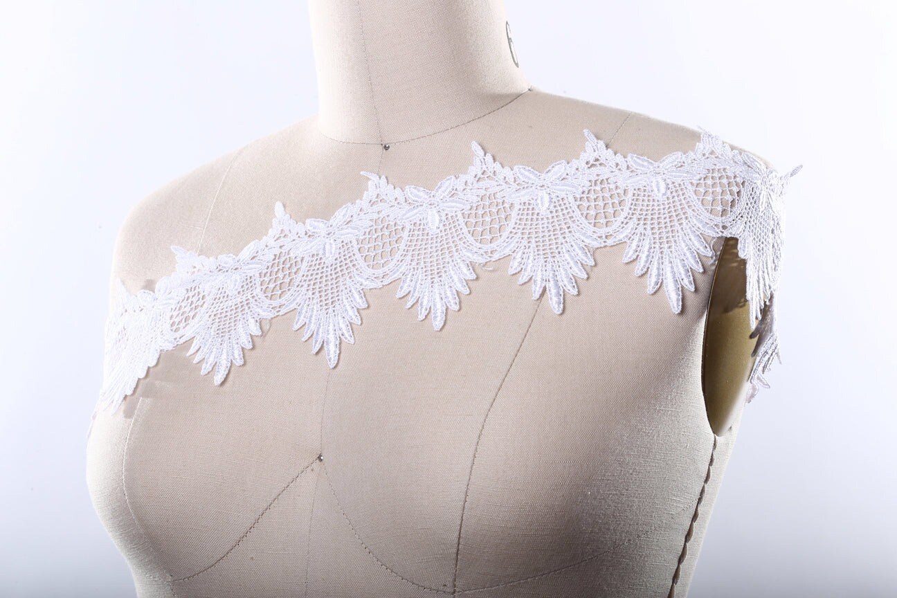 1 Yard 4 Inch White Cotton Venice Lace Trim with Silver Scallops and Floral Accents