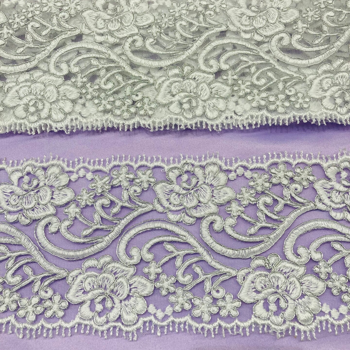 1 Yard 4″ Wide Corded Double Sided Lace Trimming on 100% Polyester Net Mesh