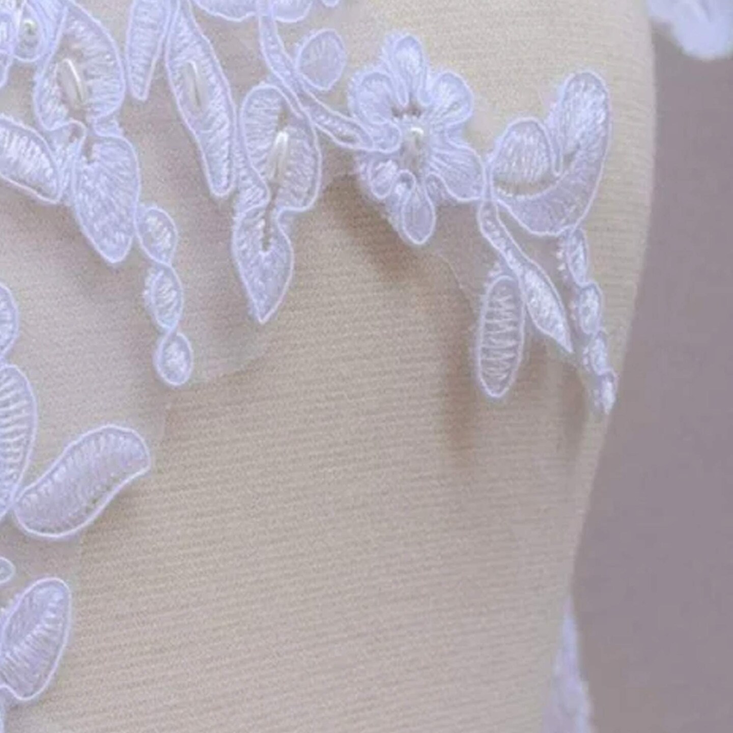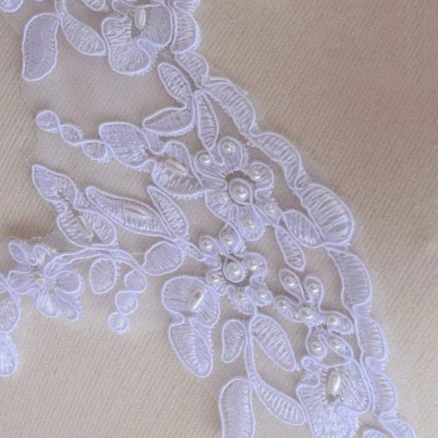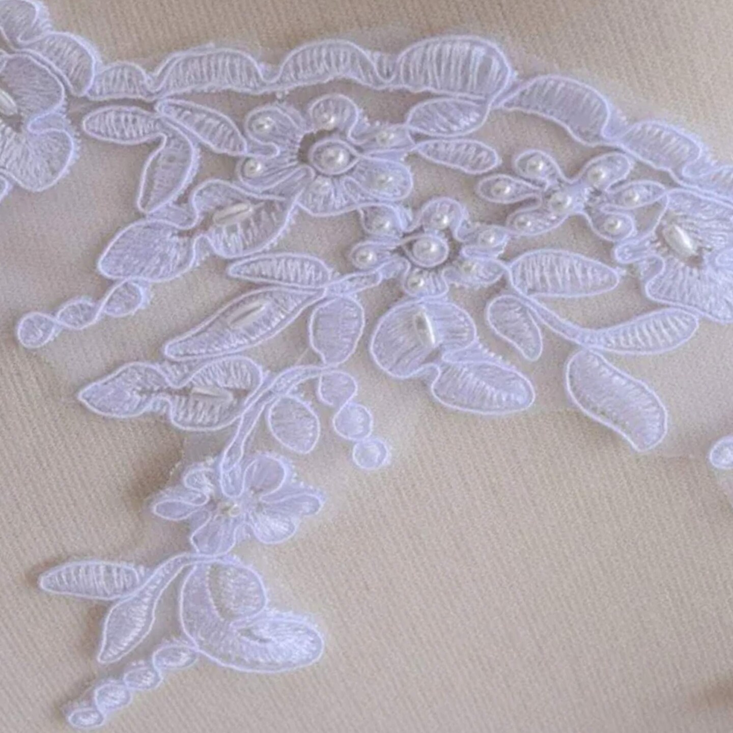 1 Yard 5" White Beaded Bridal Veil Lace Trim with Dangling Leaf Motif for Wedding Veils