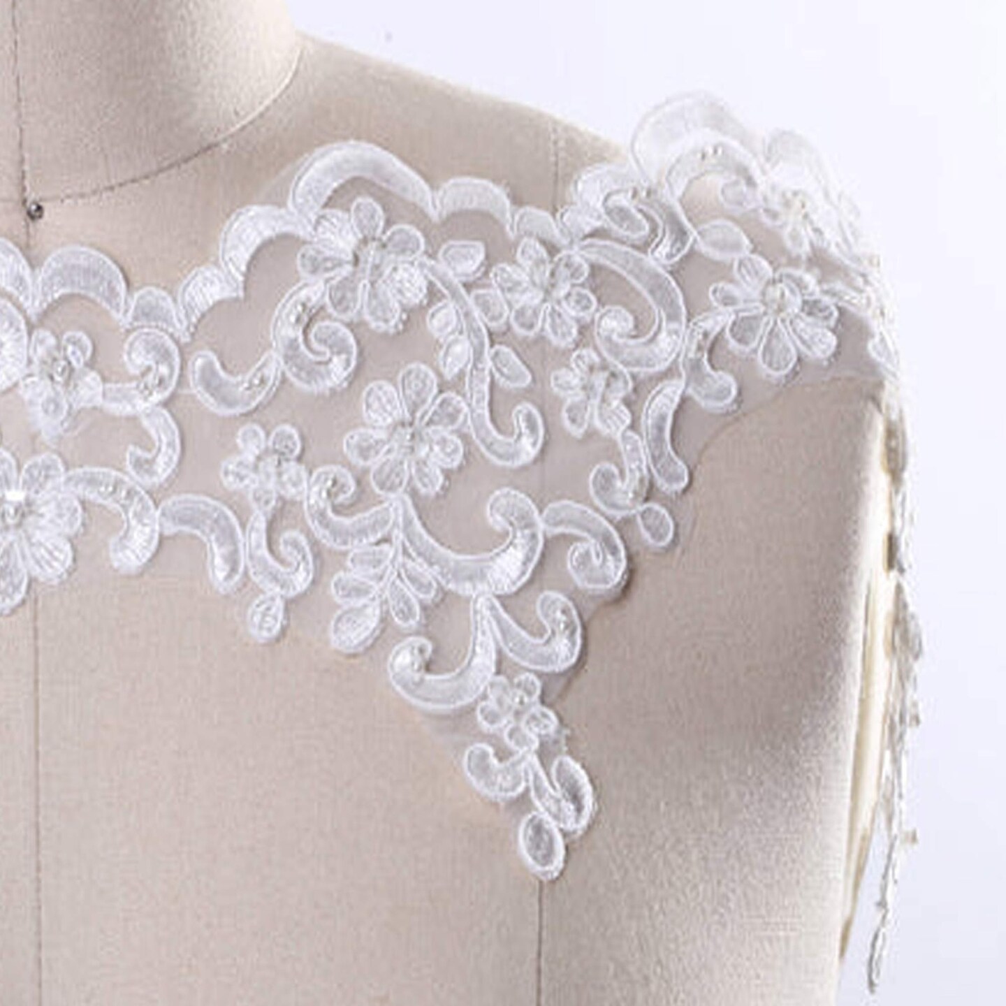 1 Yard 5.5 Inch Wide Ivory Bridal Beaded Veil Lace Trim Wedding Sequined Edging